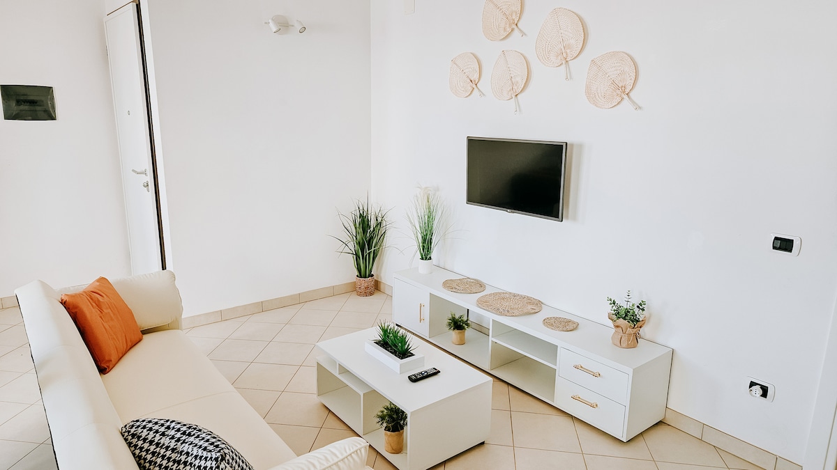 Bienvenido a Cá d'Angélica, un apartamento único frente a la playa (a 3 minutos a pie) creado para aquellos que buscan una escapada tranquila con la familia o un lugar para trabajar de forma remota con acceso directo a la playa. Este apartamento está equipado con todo lo que necesitas para estancias cortas o largas: una oficina en casa con aire acondicionado y acceso wifi ilimitado, un televisor con todas tus aplicaciones favoritas (Netflix, Max) y una cocina equipada con todos tus elementos básicos de vacaciones. Ven a disfrutar de un estilo de vida sin estrés en la mejor ubicación de Boavista