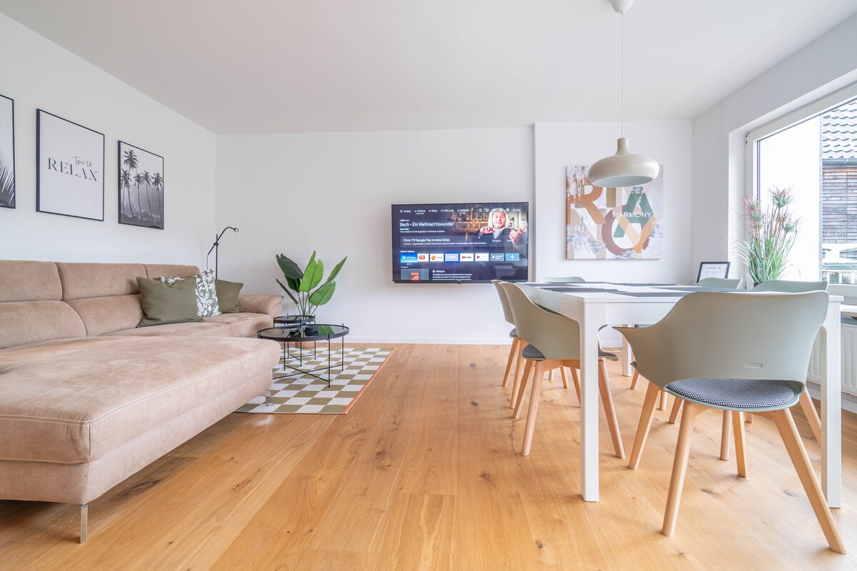 ¡Nuestro hermoso apartamento en el ático lleno de luz con vistas al campo te invita a una breve parada o a una estancia más larga en la hermosa ciudad de Bocholt! Con sus 70 metros cuadrados, tiene mucho espacio para 2 personas a las que les gusta relajarse y caminar desde aquí en 15 minutos a pie en el centro de la ciudad. Nos alegra proporcionar bicicletas, ¡porque nada funciona aquí sin las populares "bicicletas"! La panadería con una pequeña tienda está a 1 minuto a pie. ¡Está prohibido fumar!