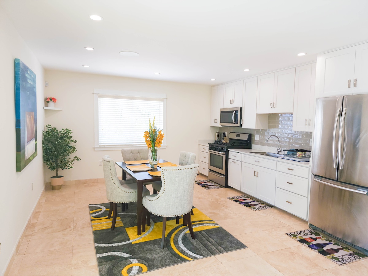La suite estudio de bambú es un refugio pintoresco, tranquilo y céntrico. La suite está totalmente amueblada con TV completa, wifi, todos los electrodomésticos de cocina principales, lavadora y secadora, y una bonificación de platos y cubiertos. Hay mucho estacionamiento y un patio lateral tranquilo.