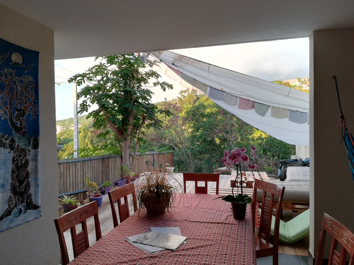 Nuestro alojamiento está cerca de las tiendas, entre el mar y la montaña, a 20 minutos de las playas, a 160 m de altitud, acceso directo a la carretera de Maïdo y cerca de los accesos a Mafate (sitios excepcionales para los excursionistas), en un barrio criollo. Le va a gustar este lugar zen por las zonas exteriores y su diseño. Solo apto para una pareja o persona que viaja sola. (Wifi no profesional). Entrada común al jardín con los propietarios que permite intercambios amistosos e interesantes.