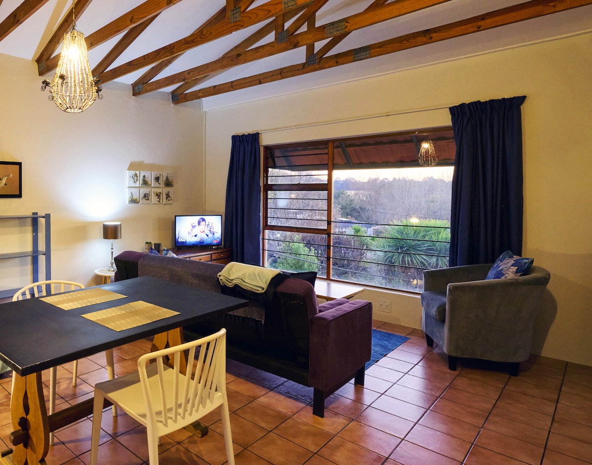 Esta espaciosa casa de campo moderna y autónoma con un dormitorio (cama tamaño queen), baño y cocina/salón de planta abierta se encuentra en un tranquilo jardín con piscina y aparcamiento seguro fuera de la calle. Estamos a poca distancia a pie de Melrose Arch. Adecuado tanto para personas de negocios como para viajeros. Los inversores recientemente instalados hacen que las luces, el wifi, la televisión y los sistemas de seguridad sigan funcionando durante los cortes de energía.
