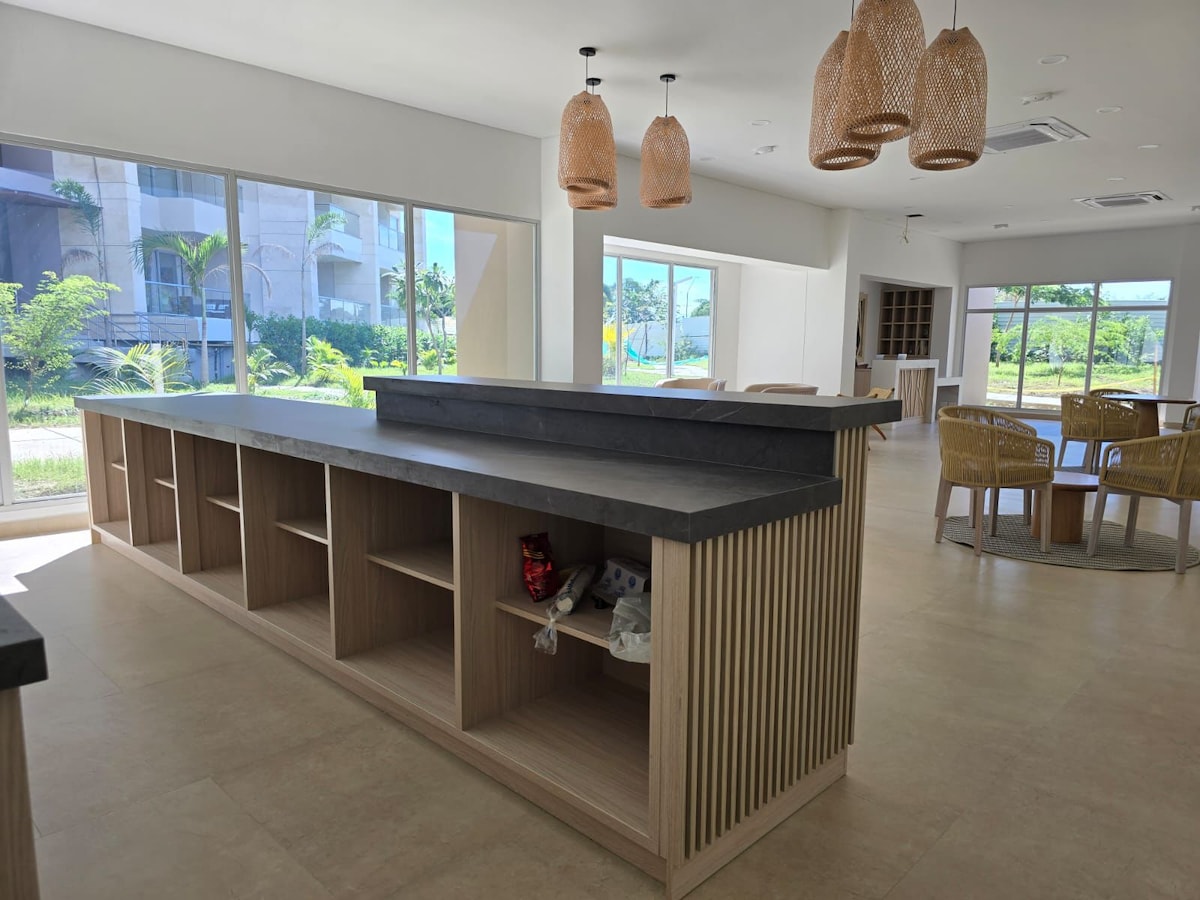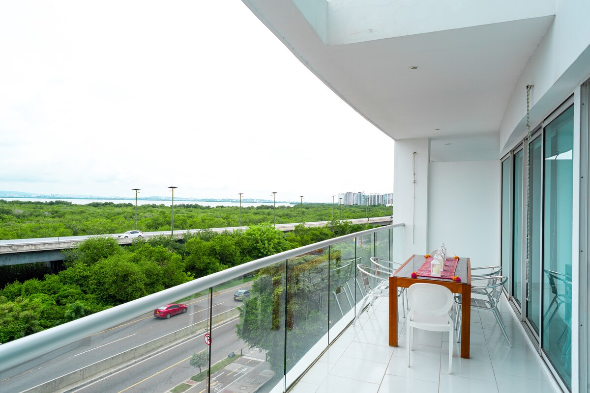 Apartamento moderno con hermosa vista a la laguna 2 habitaciones con 2 baño privado + 1 baño social Agua caliente para relajarte Salida privada a la playa Ubicación ideal: • 5 min del aeropuerto • 15 min del Centro Histórico Restaurantes gourmet y cafés cercanos como Juan Valdez Café Edificio mixto con acceso a servicios del hotel de lujo Faranda Collection Comodidad, ubicación y estilo en un solo lugar. Perfecto para tu estadía en Cartagena. No se permiten visitas, por favor no insista.