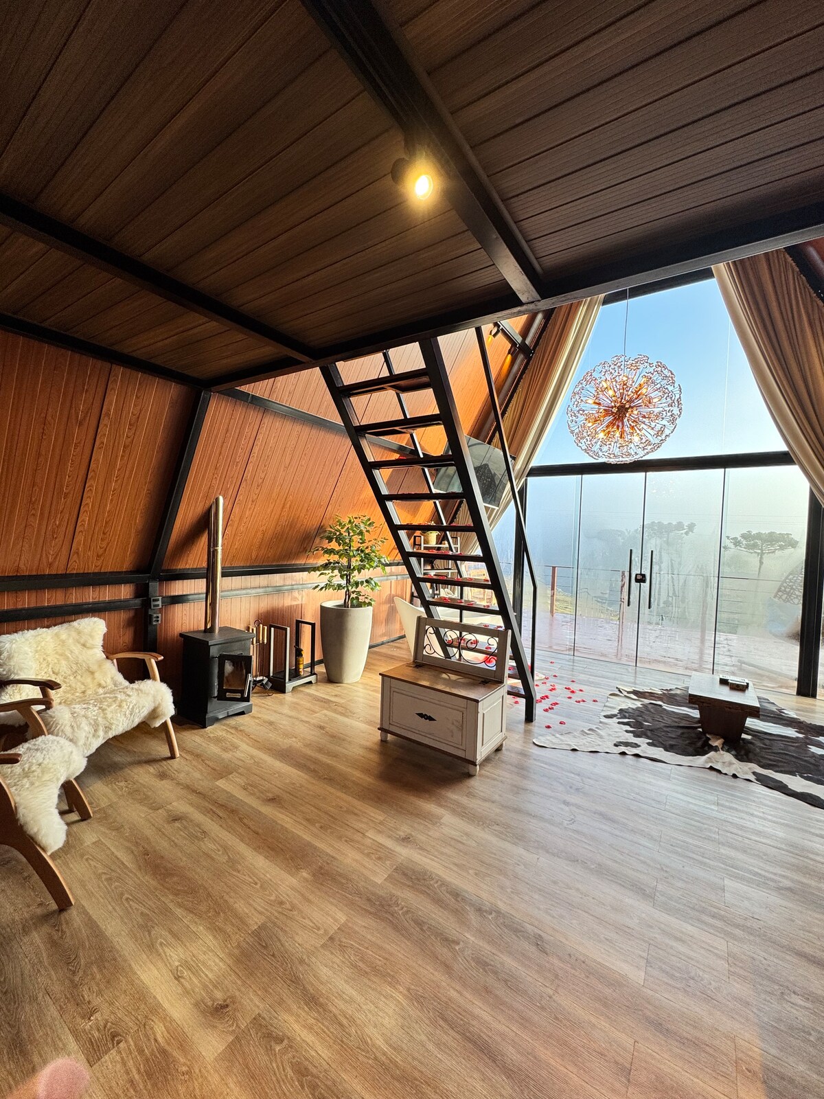 El Sirius Hut, que lleva el nombre de la estrella más brillante del cielo nocturno, ofrece una experiencia única. Con bodega, calentador, spa de hidromasaje para 4 personas y vista panorámica del bosque de Goiabeiras. Dos camas tamaño queen con ropa de cama de algodón de 800 hilos, baño Trussardi, toallas eléctricas e internet de alta velocidad. Las paredes con aislamiento térmico/acústico garantizan la tranquilidad. En la cubierta, disfruta de la chimenea y la barbacoa con vistas al río, el bosque y las montañas.