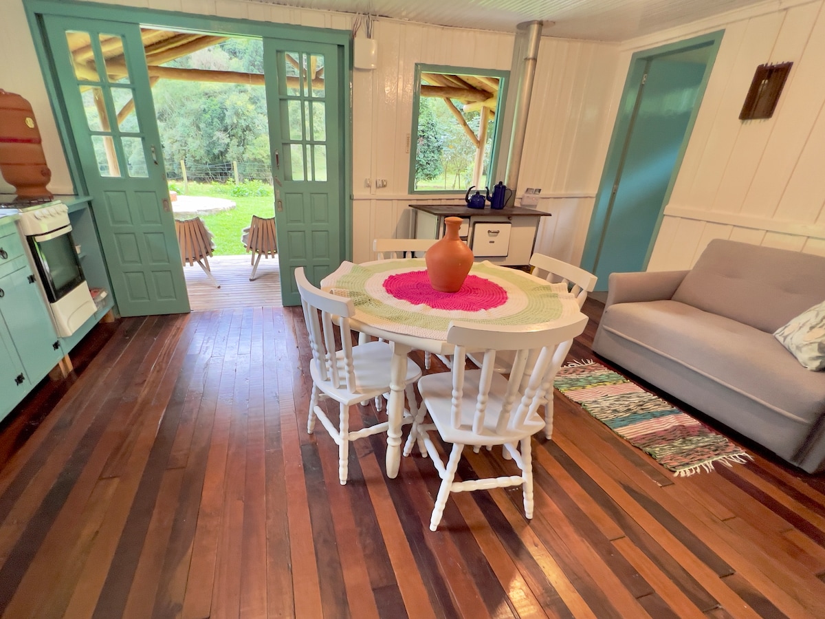 PROMOCIÓN! Haga su reserva y gane una noche extra! Mi casa tiene 78 m2 de espacio integrado a la exuberante naturaleza de la Mata Atlántica, a 650 metros de altitud, en la Sierra Catarinense. El río con sus pequeñas cascadas, la variedad de pájaros, el silencio y la tranquilidad son una invitación al sosiego. En los días fríos, la cocina a leña vuelve el lugar más acogedor y, en ese escenario especial, podrán disfrutar de nuestros 2.000 libros. ¡Bienvenidos/as!