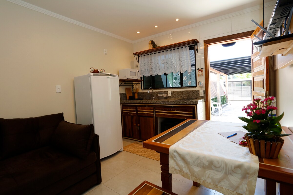 Suite monoambiente dormitorio y cocina. Baño. A solo 80 metros de la playa principal de Bombinhas. Nuestra dirección es Rua Salema, 29. ¡Aquí estás cerca de las mejores playas, Bombinhas, Prainha, Embrulho, Lagoinha, Sepultura, Retiro do Padres y Quatro Ilhas! ¡Todo para hacer a pie! Ofrecemos a nuestros huéspedes máscara de buceo, sillas y sombrilla.