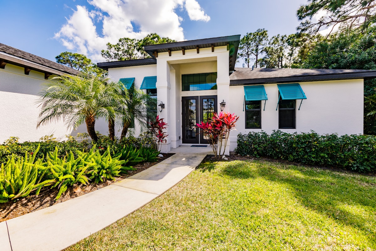 Cerca de las playas. Esta casa fue completamente renovada en 2020, tiene una cocina grande y espaciosa, nevera de cero grados y una gran sala de estar. Lavadora, secadora y electrodomésticos de tamaño completo. La sala de estar tiene una hermosa vista de un estanque rebosante de vida, tortugas, patos, garzas y peces. La casa se encuentra sola en una calle sin salida muy grande. Patio trasero privado con una valla de privacidad y estanque, para tu uso. (No hay zonas comunes). Los huéspedes dicen que las fotos no hacen justicia a esta unidad.