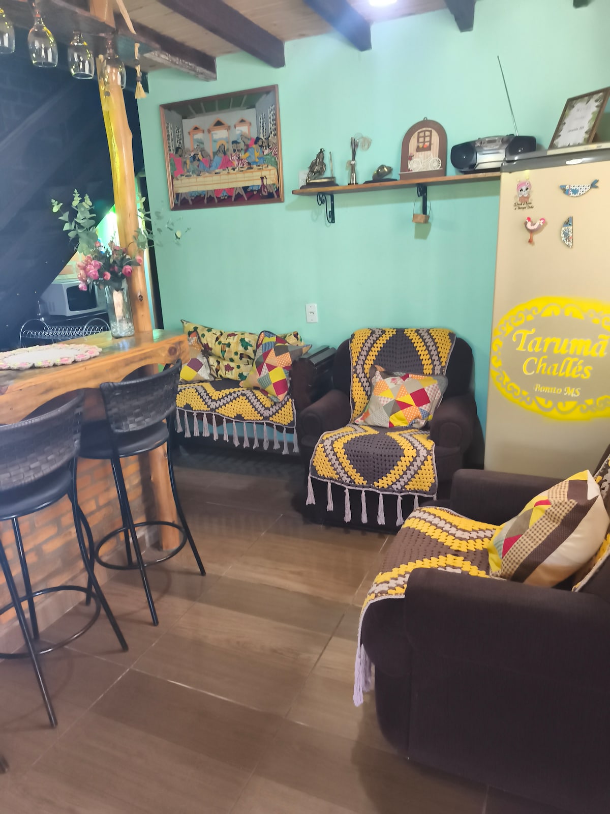 encantadora casa de campo con estilo rural y todas las comodidades de la ciudad, muy acogedora y llena de cariño y personalidad en los detalles, en Taruma Park, barrio encantador en una de las regiones más altas de Bonito, famosa por su rusticidad, hermosos paisajes y naturaleza, corto y disfrutar de este espacio único junto a personas especiales. Reúne a aquellos a los que les gusta una barbacoa después de los recorridos o en los días de lluvia o invierno y relájate en este ambiente contagioso y acogedor que nos trajo aquí.