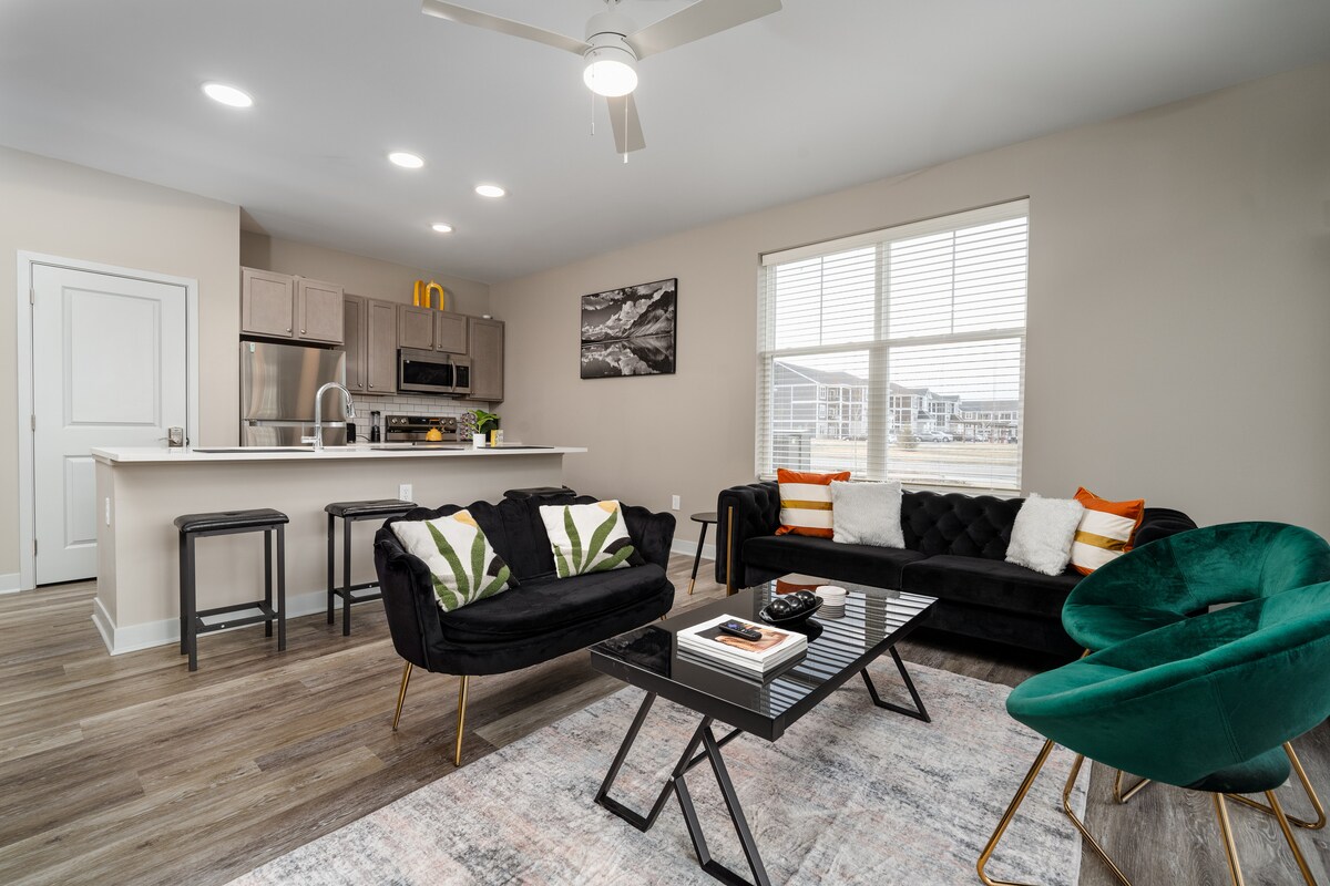 ¡Te damos la bienvenida a tu retiro moderno en Whitestown, Indiana! Este nuevo apartamento de 2 dormitorios y 2 baños ofrece una estancia lujosa pero cómoda para un máximo de 5 huéspedes. Diseñado cuidadosamente con habitaciones espaciosas y servicios de primera calidad, para una escapada relajante. Cada dormitorio está amueblado con exuberantes camas queen y una cama plegable garantiza una flexibilidad adicional para grupos más grandes. El apartamento también cuenta con grandes vestidores, un patio privado, un espacio de trabajo dedicado para trabajar a distancia y baños de primer nivel.
