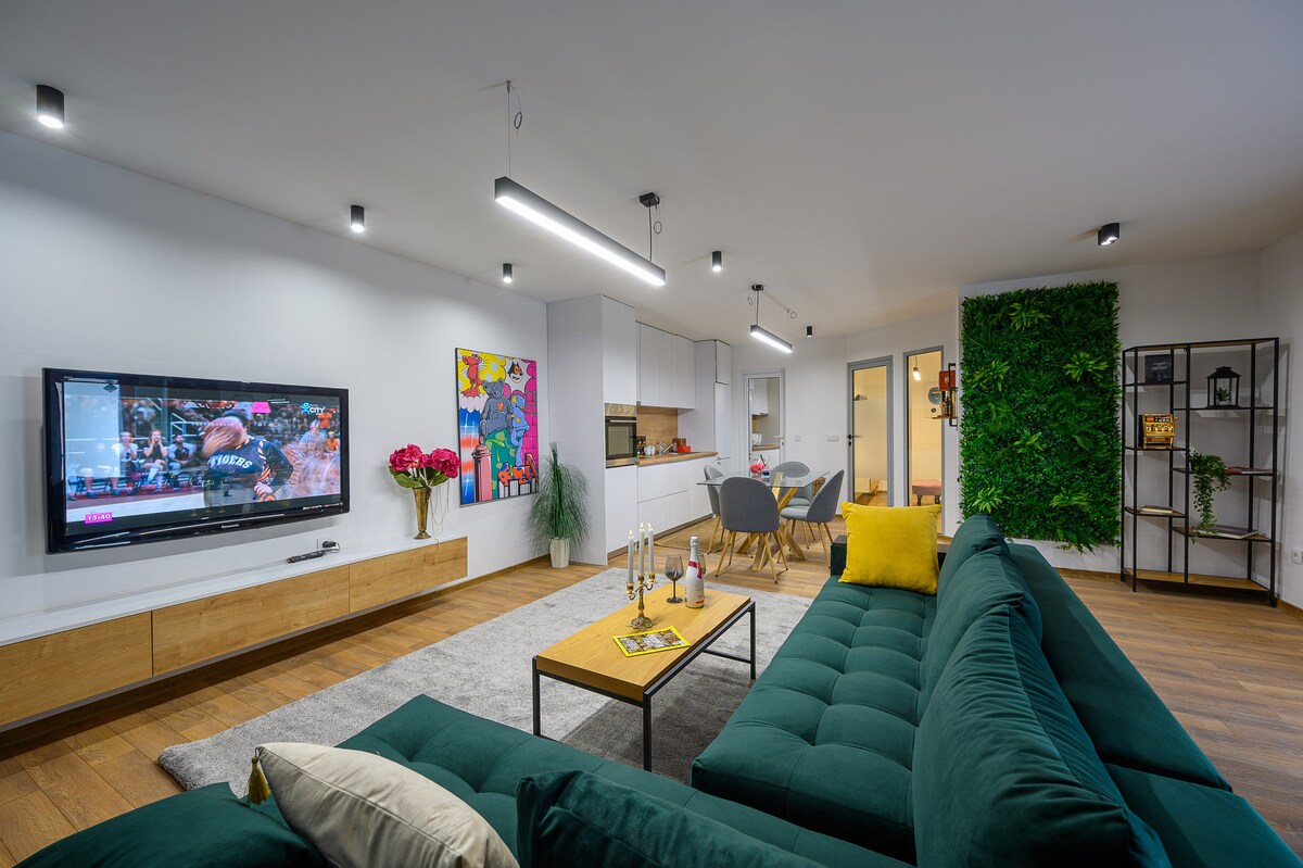Sé que mi huésped es un apartamento cómodo, extremadamente luminoso y elegante de un dormitorio, un baño, una sala de estar con una cocina y una mesa de comedor, donde para la comodidad de los huéspedes también hay un sofá cama con colchón. Para la comodidad de los padres con niños pequeños también ofrecemos cunas adicionales y sillas altas. Nuestro huésped está disponible en nuestra biblioteca, así como en el patio con la barbacoa semi cerrada. Es un gran lugar para escapar a la naturaleza, paseos, caminatas y practicar deportes de invierno.