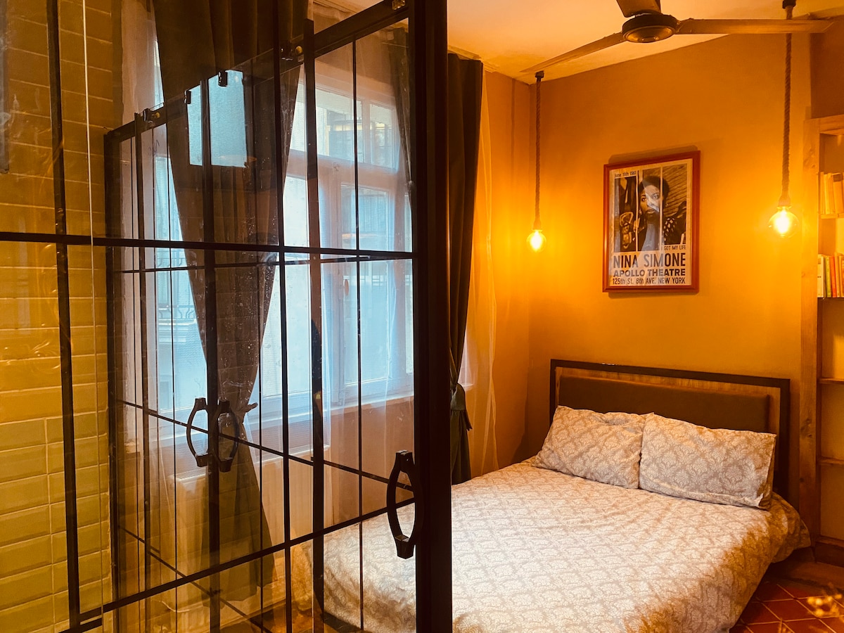 Esta es nuestra casa. Nos encanta. Nos preocupamos por ello, también nos preocupamos por el sentido del espacio y la calidad del tiempo. Esperamos que tú también. Este alojamiento de 160 m2 con techos altos y 1 dormitorio está situado en el 4º piso de un edificio histórico semirresidencial. Aunque nos encanta pensar que el lugar está lleno de paz, comodidad y personalidad, la verdadera magia del mismo es exactamente donde se encuentra. Está a solo un minuto de los transbordadores y, de alguna manera, se encuentra en medio del bullicio de Kadikoy.