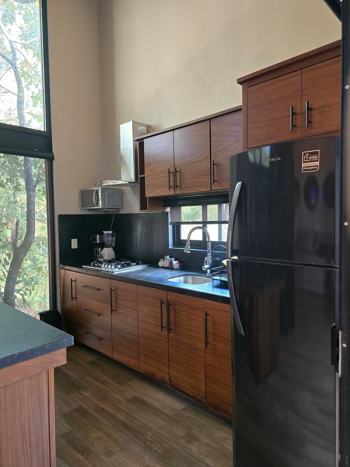 La Cabaña Turemsa está localizada en el Pueblo Mágico de Mazamitla, Jalisco, es una hermosa suite tipo loft completamente equipada en el medio del bosque, rodeada de antiguos encinos, hermosas vistas y aire puro dentro del exclusivo Fraccionamiento Paso del Ciervo, en Mazamitla Jalisco. Su diseño con grandes ventanales y acabados de lujo, harán de tu estancia una experiencia inolvidable para reconectar con la naturaleza.