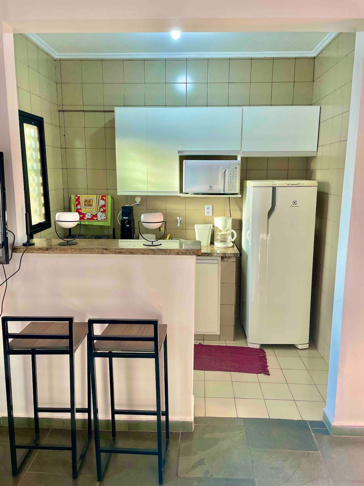 Piso con aire acondicionado, limpieza diaria, servicio de habitaciones, TV, WiFi, cama queen, recepción 24 horas, piscina, gimnasio, plaza de aparcamiento gratuita con aparcacoches. Balcón y dormitorio separado de la sala de estar. Ropa de cama, manta y toallas disponibles. No se admiten mascotas. ¡Cerca de Carrefour, del centro comercial Santa Úrsula, de restaurantes, de la estación de autobuses, del centro de convenciones, del paseo marítimo, de tiendas y de la cervecería Pinguim! ENTRADA DESPUÉS DE LAS 14:00 Y SALIDA ANTES DE LAS 12:00