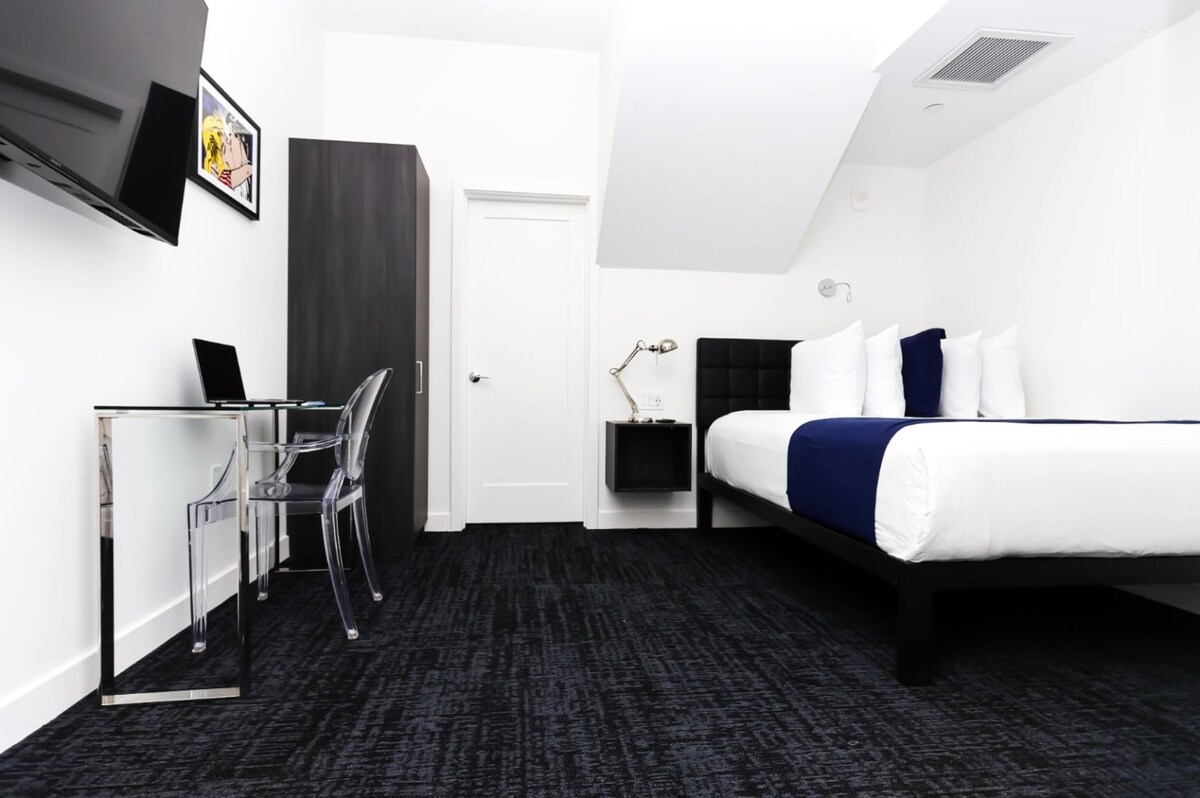 Disfruta de una estancia única, cómoda y lujosa en Boston en el 28 Fenway de Maverick Suites. Situado en el corazón del distrito de Fenway, este moderno apartamento tipo estudio ofrece lujo y estilo con un toque de rebelión. Esta habitación se encuentra en la antigua gran sala de una mansión centenaria. Disfruta de la comodidad de estar cerca de los mejores restaurantes, museos y atracciones de la ciudad. Con muebles cómodos, decoración elegante y un espíritu de exploración, Maverick Suites '28 Fenway es el p