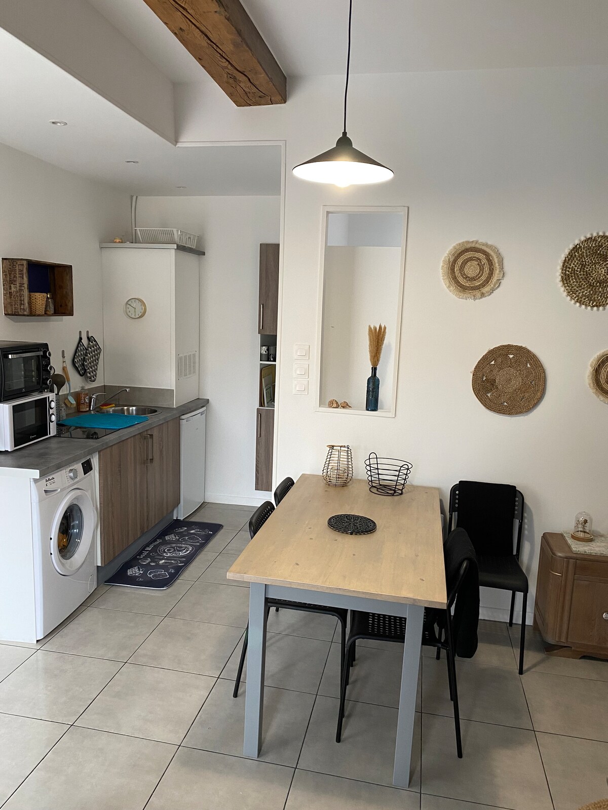 Bienvenue à la maison de Julie ! Un séjour ressourcement en bord de mer, accessible en train (1h de Nantes) et sans nécessité de voiture sur place, pour encore mieux déconnecter… Nous vous accueillons au rez de chaussée d'une demeure de caractère du 17ème siècle, située à 10mn à pied de tout : l'océan, les marchés, les commerces, les restaurants et terrasses… Pierres, bois, matières naturelles et couleurs choisies vous accompagneront pour un décor cocooning à souhait.