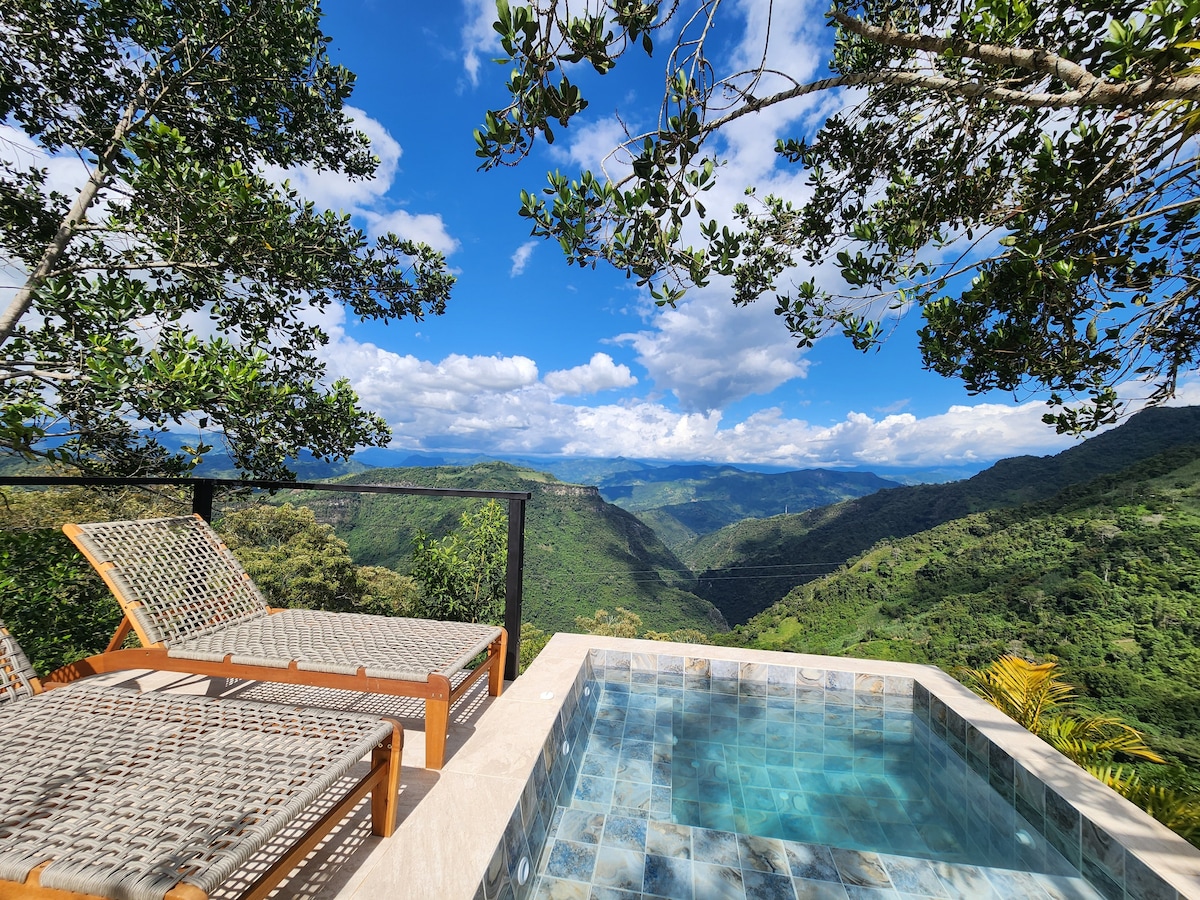 Despierta con amaneceres de postal en las montañas de La Calera, a solo 25 min de Bogotá y 60 min del aeropuerto. Nuestro Glamping tipo A ofrece dos balcones panorámicos, jacuzzi privado bajo las estrellas y chimenea para noches inolvidables. Perfecto para parejas que buscan lujo y desconexión en plena naturaleza. Capacidad máx. 4 huéspedes; precio base para 2 personas con cargo adicional por huésped extra. Senderos en finca de 4 ha y acceso al río Teusacá, vive una experiencia diferente.