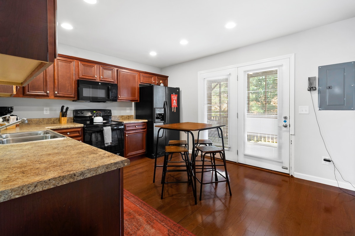 Cama tamaño king mejorada: se aceptan alquileres corporativos y enfermeras de viaje. La Hepburn House, un encantador dormitorio a varias manzanas de Lee, está a pocos pasos de la vía verde, cafeterías, panaderías y tiendas. A 20 minutos del río Ocoee, ¡estás cerca de aguas bravas de clase IV para practicar rafting, senderismo, paseos por hermosas gargantas y mucho más! La HH está decorada de forma única para brindar comodidad y calidez. Nuestra cocina totalmente equipada ofrece todo lo que necesitas si renuncias a cenar en los mejores restaurantes locales a menos de 1 milla de distancia.