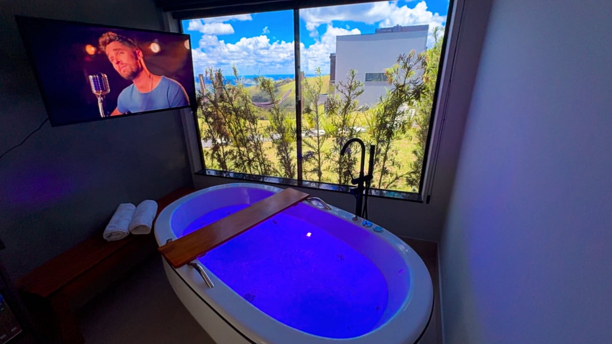 ¡Nuevo tenis cuadrático de playa! Chalet súper caliente en una zona tranquila a los pies de Pedra Grande. Parece un chalet rural, rodeado de aire verde y limpio, pero en realidad estamos dentro de la ciudad, ¡cerca de todo! Tenemos una vista impresionante y una puesta de sol reflejada en el agua, ¡haznos agradecer cada minuto de las oportunidades que tenemos! ¡El fuego del piso también es muy bueno para esas largas conversaciones con vino y guitarra!