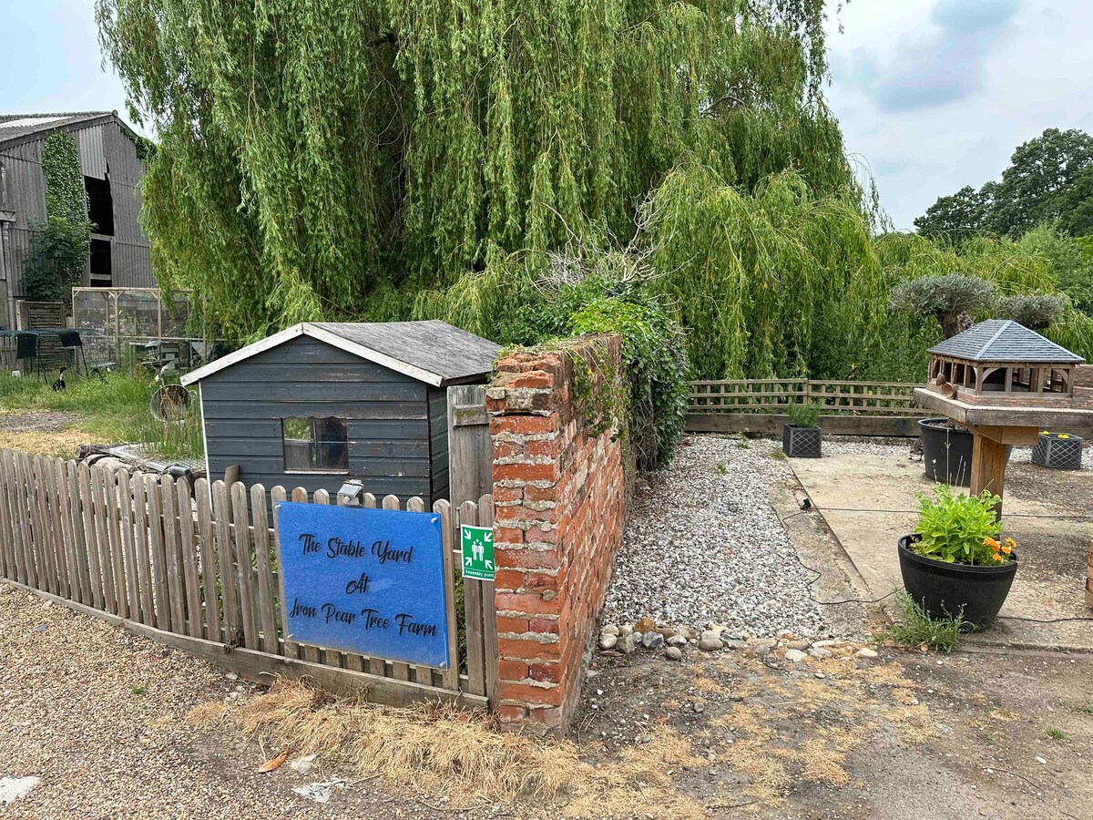 A relaxing layover at this peaceful snug, 7-10min from Stansted. Transfers, EV charging and car storage available A King Size Bed awaits plus a small double and Z-Bed for children (Total occupancy is 4 people). Well behaved pets welcome. USB ports, smart tv and built in electric toothbrush chargers for convenience together with tea & coffee and small fridge for light refreshments. Beautiful country walks and pubs on hand for those with a little more time