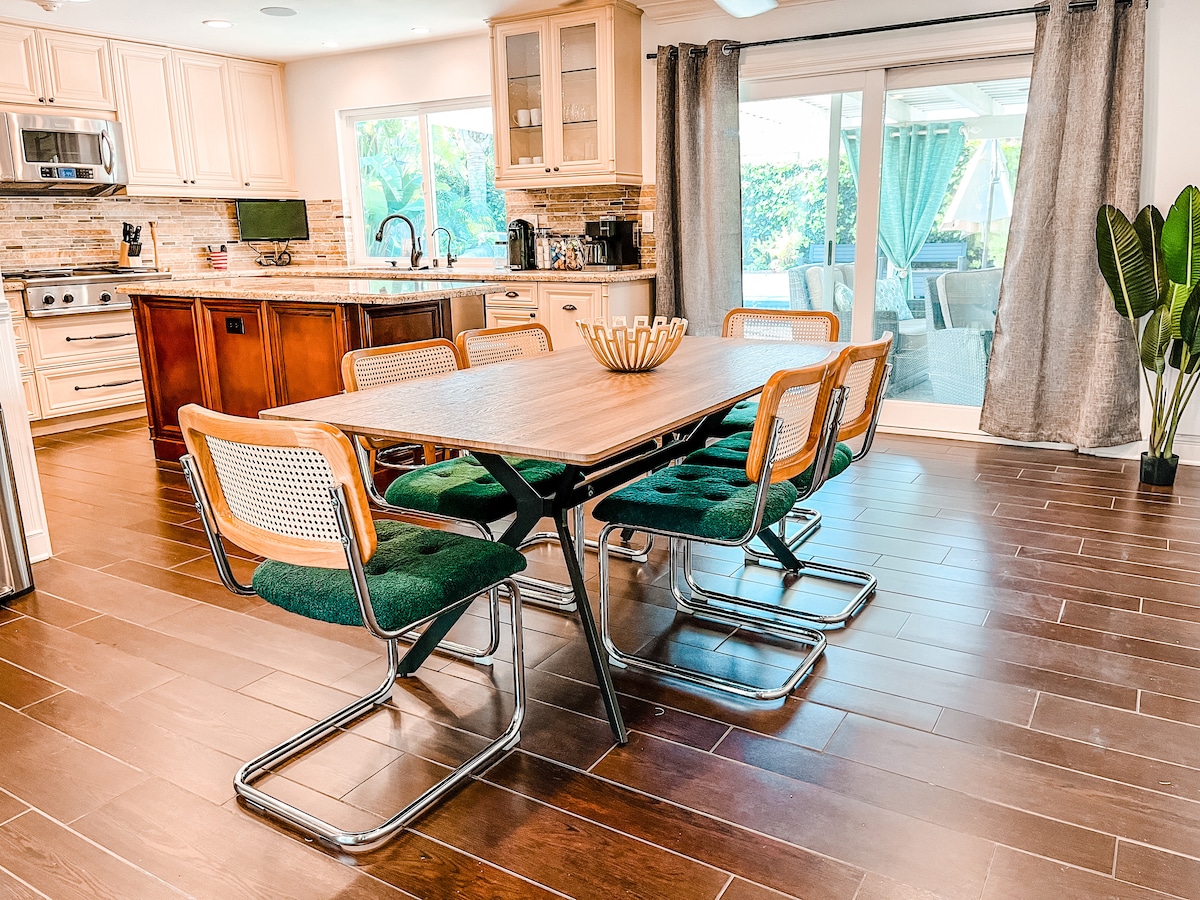 ¡Disfruta de una experiencia de lujo en este céntrico alojamiento de That Yellow Door! Esta espaciosa casa de concepto abierto se encuentra en la soleada Fullerton, California, a 15 minutos en coche de Disneyland. Diseño profesional y toques de decoración en todas las habitaciones. Preparad comidas juntos en nuestra gran cocina totalmente equipada que fluye directamente al comedor y sala de estar o disfrutad del espacioso patio trasero. ¡Juegos exteriores e interiores que familiares y amigos pueden disfrutar!