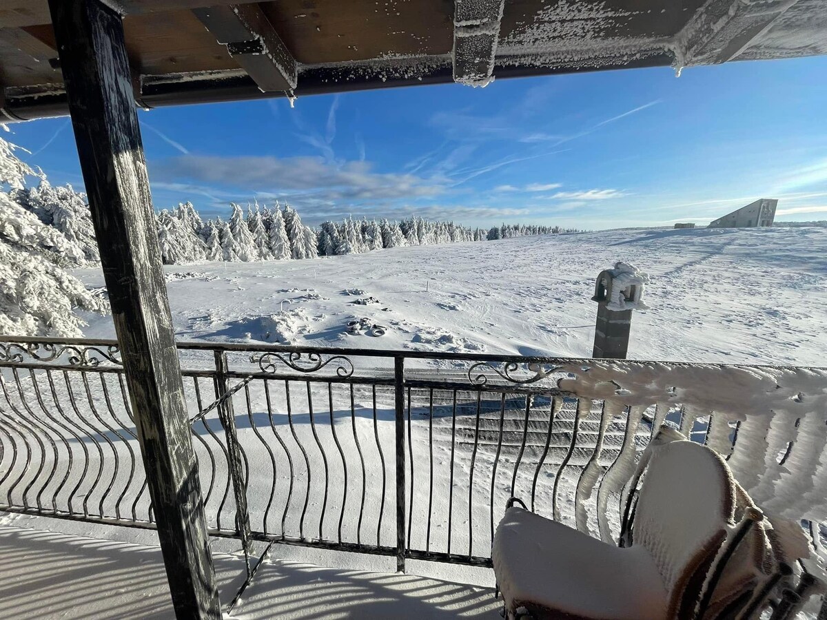NEW- HOT TUB-200 lei/stay A sanctuary for two, where the mountains meet the sky Wake up to golden light flooding through floor-to-ceiling windows — from the cozy living room to the serene bedroom, each framing a breathtaking view Inside, the crackle of the fireplace warms the heart, while the walk-in rain shower beneath a skylight reveals the stars above. Every detail is crafted for comfort and romance — goose down duvets and pillows, premium linens, and a fully equipped kitchen.