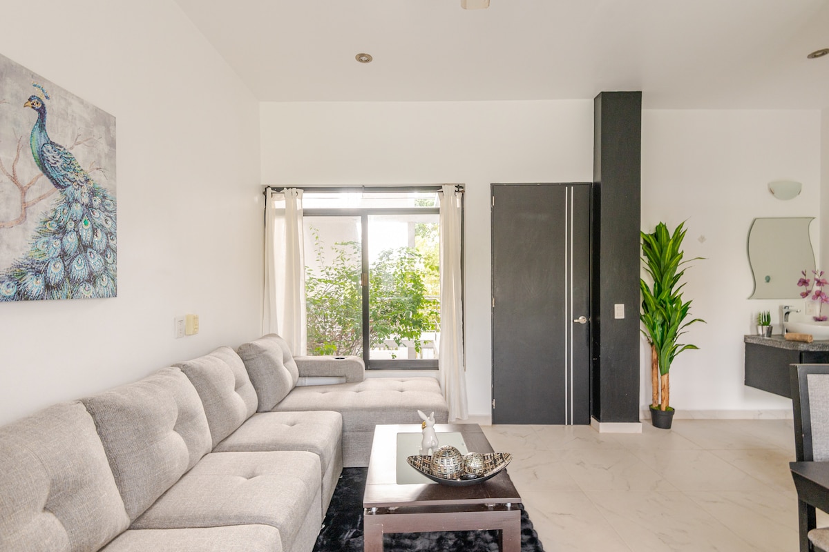 Confortable departamento privado en un lugar céntrico y seguro, lo cual permite llegar en poco tiempo a las principales playas de PXM. Hay varios restaurantes por la zona, pero si deseas preparar tus alimentos, a tan solo unas cuadras está un Chedraui y un Oxxo cercano. El alojamiento está a un costado de la casa de los anfitriones, los cuales con mucho gusto siempre te brindarán recomendaciones de lugares para visitar y están al pendiente de cualquier duda o necesidad que llegaras a tener.