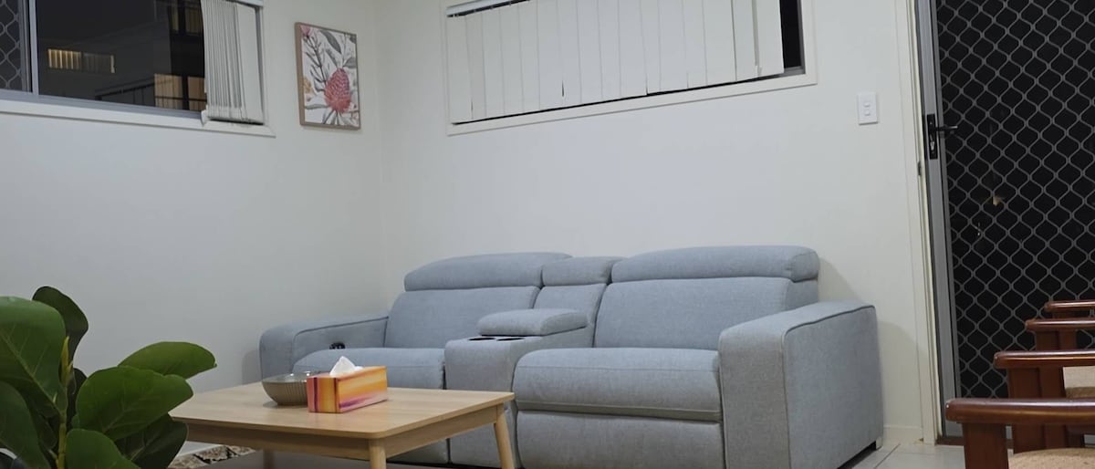 Big enough for the whole family with enough space for everyone. This beautiful newly built premium townhouse has 3 bedrooms, an office nook, a little garden and a single garage. It has an ensuite and a bathroom and great living area that breaks out into the outdoor space. Premium finishes and excellent kitchen facilities - this is the perfect home away from home. Little office, fully air conditioned & lockup garage! Fast internet and every little kitchen utensil included!