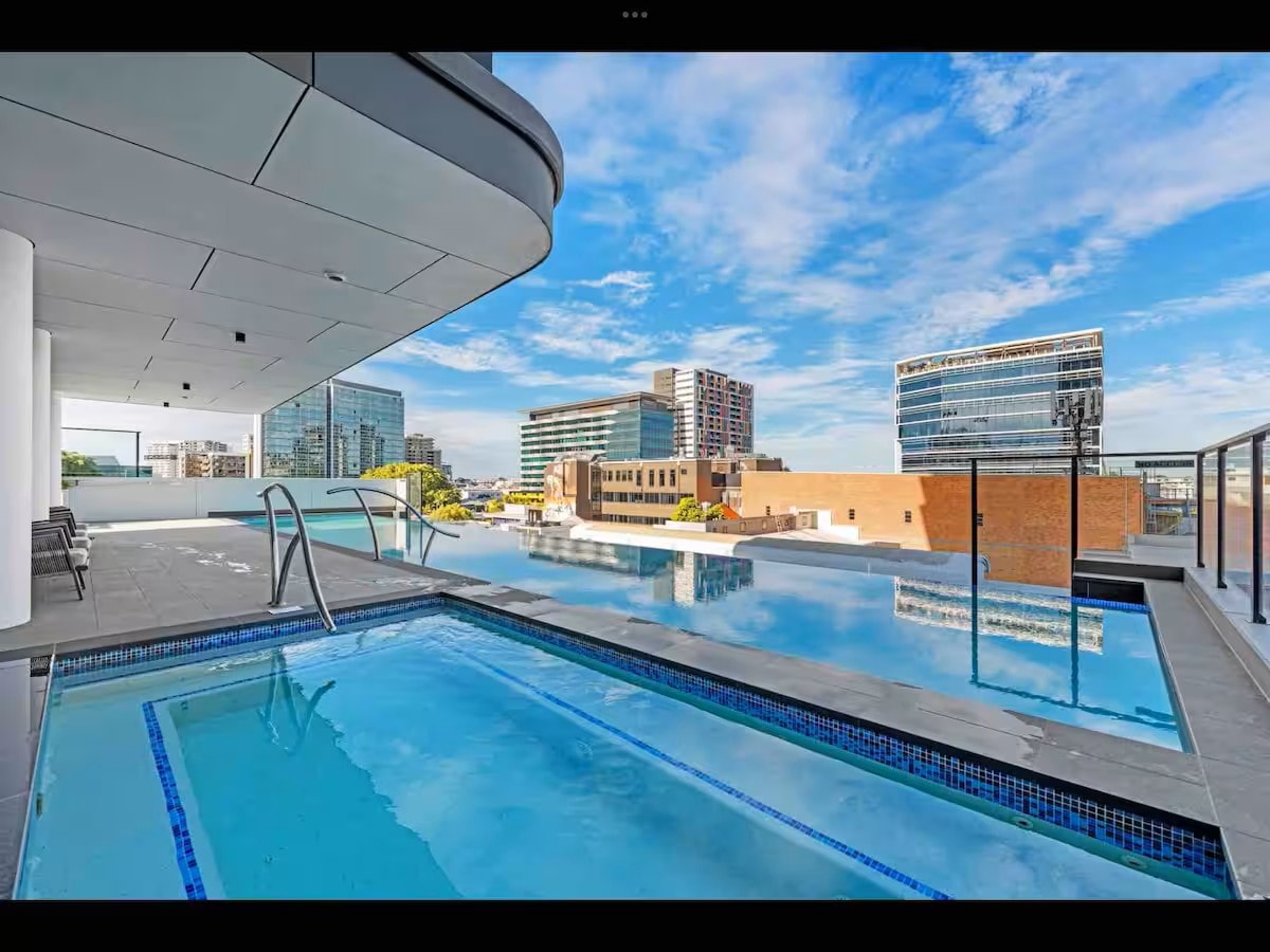 Modern and spacious, spotlessly clean 1BR steps from the stylish James Street Precinct in Brisbane. Perfect for couples or business travellers, featuring a hotel-quality queen bed, fast Wi-Fi, dedicated workspace, and a fully equipped kitchen with integrated water filter. Enjoy morning coffee or evening drinks on the private balcony, relax by the pool, and benefit from secure parking and easy self check-in. Ideal for weekend getaways, work trips, or city stays. Feel free to reach out!