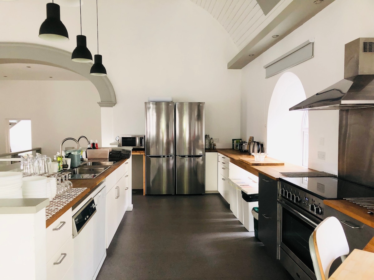 Si «Grand Designs» es tu punto de referencia, no busques más. St Paul's Chapel es un paso hacia el lujo lúdico. Puedes dormir en un idílico dosel de cuento de hadas, en el mismo lugar donde solía cantar el coro. La sencillez del espacio de planta abierta está diseñada para funcionar con actividades polivalentes. Ya sea que estés cenando con 6 personas, viendo la final de la copa en el televisor gigante montado en la pared con barra de sonido, o subiendo la música con el fuego de leña encendido y las luces apagadas... tú decides.
