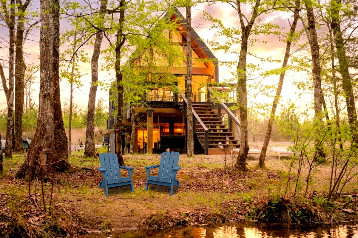 Casa de diseñador de lujo en un arroyo + jacuzzi | ¡NUEVO!