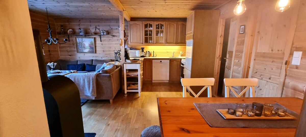 Moderna y acogedora casa de campo que se terminó en 2021. La cabaña está ubicada en el campo de la cabaña Sitåsen, cerca de rutas de esquí y senderismo, estaciones de esquí, pista de esquí de ruedas, pista de bombeo y vía ferrata. La cabaña tiene una sala de estar de planta abierta con solución de cocina, dos dormitorios, baño, loft y terraza grande. Hay lavavajillas, lavadora, wifi y Smart TV en la cabaña. El dormitorio 1 tiene una cama doble, el dormitorio 2 tiene una litera familiar (2+1) y en el altillo hay tres colchones. Los huéspedes deben guardar los consumibles ellos mismos, traer sus propias sábanas y toallas. Los huéspedes se lavan ellos mismos.