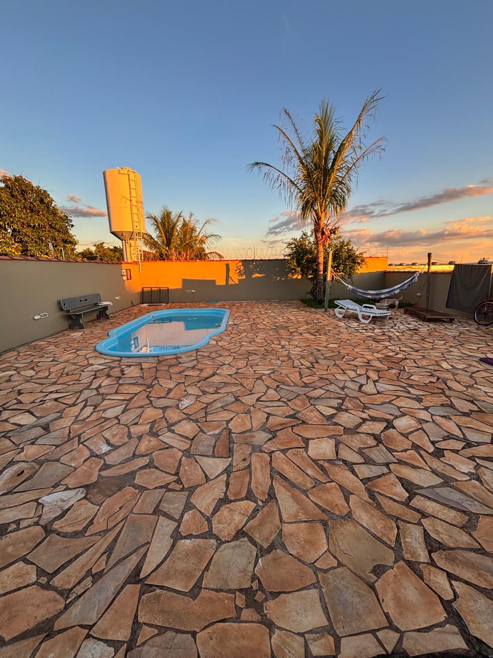 Um espaço ideal para relaxar com a família e amigos, com ampla área externa, piscina cercada, churrasqueira completa e diversas opções de lazer para adultos e crianças. • Piscina com cascata e área de descanso • Telão de cinema com karaokê • Casa na árvore e playground • Mini campo com rede de vôlei • Pergolado com redes para descanso • Quartos com Ar Condicionado Checkin 16h Checkout 11h Possível Early/ Late R$ base até 5 Pax(após, R$50/pax/noite)