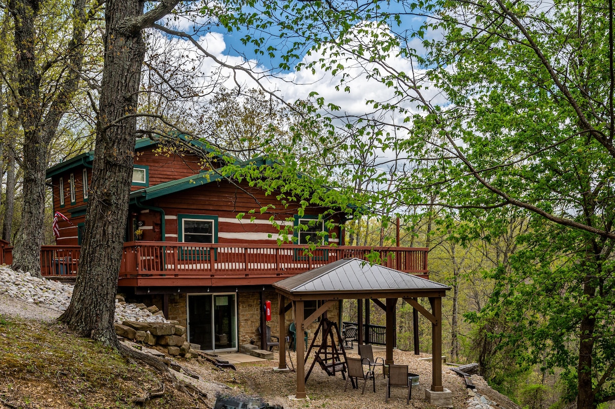 ¡The Lodge at Treetop Retreat es un antiguo estudio de grabación con una vista INCREÍBLE! Ubicado en lo alto de una de las colinas más altas del condado de Brown, este enorme espacio cuenta con techos de 20 pies en la gran sala de concepto abierto. Con una bañera de hidromasaje cubierta, bañera de hidromasaje, chimenea de gas (de temporada), mesa de billar y un montón de espacio interior abierto, este es un lugar genial para relajarse. Cama tamaño king en la planta baja y dos camas tamaño queen en el loft. Un porche delantero con columpio en el porche y una terraza trasera con sillas y una parrilla de carbón.