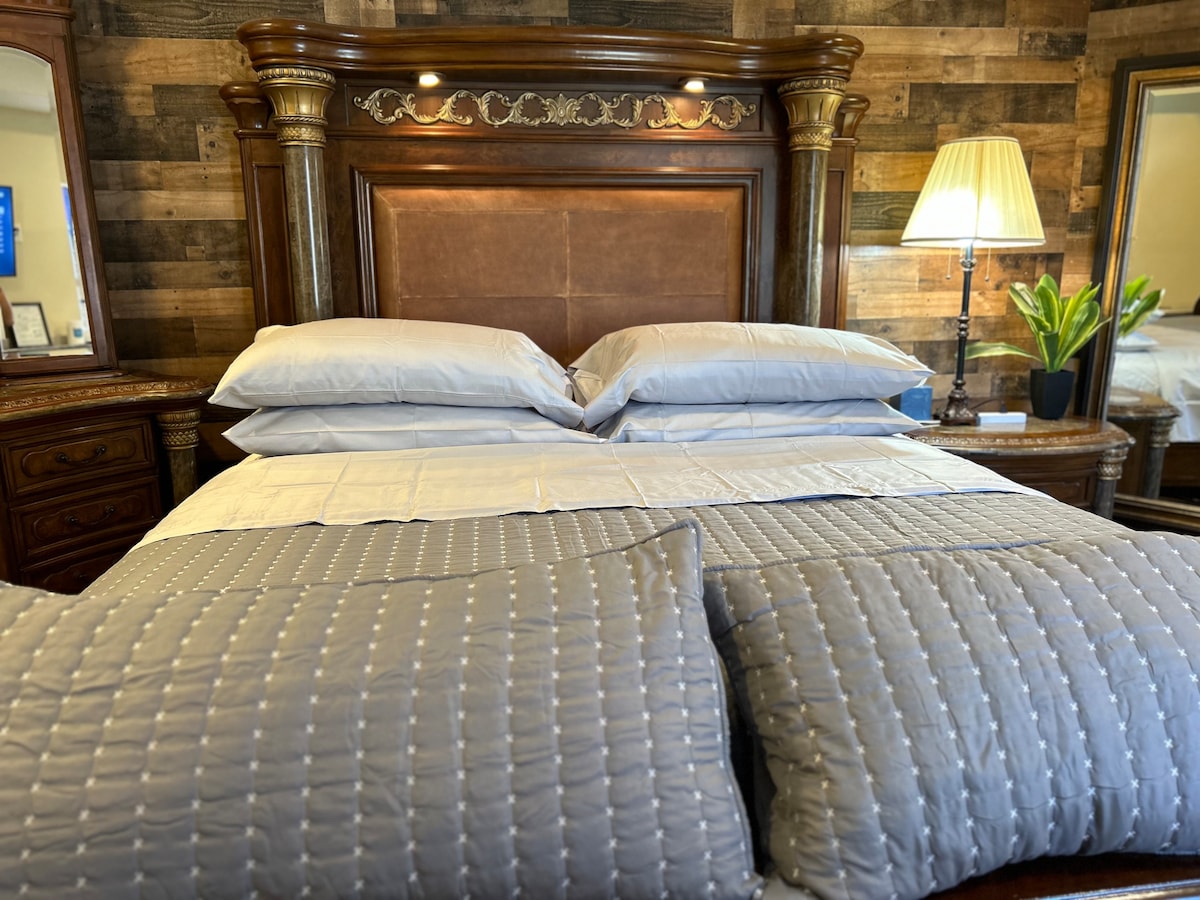 Disfruta de tu privacidad en este suite principal con una cama king California . ….. no está apto para niño , Porque el baño tiene un escalón . Ubicada en la parte trasera de mi casa hecho independiente , adecuados para viajes de trabajo, negocio o vacaciones o estadías mensuales . Estacionamiento Entrada independiente . Amplio vestidor . Mininevera , microondas . Sistema de vigilancia /grabación al rededor de la casa. Las cámaras se encuentran en el estacionamiento y en los pasillo