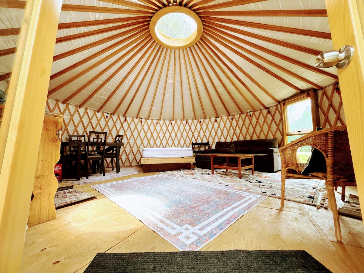 La yurta se encuentra en nuestra granja biodinámica de 200 acres en la hermosa West Grey. Los huéspedes pueden pasear por la propiedad y disfrutar de la naturaleza. Un acogedor espacio aislado disponible todo el año. Este alojamiento es rústico con instalaciones de baño recién construidas cerca. También está disponible una experiencia en una granja. Las pistas de raquetas de nieve o esquí están cerca o en la granja. El spa (jacuzzi y sauna) está disponible para reservas privadas para 2 personas por una tarifa adicional de 125 $.