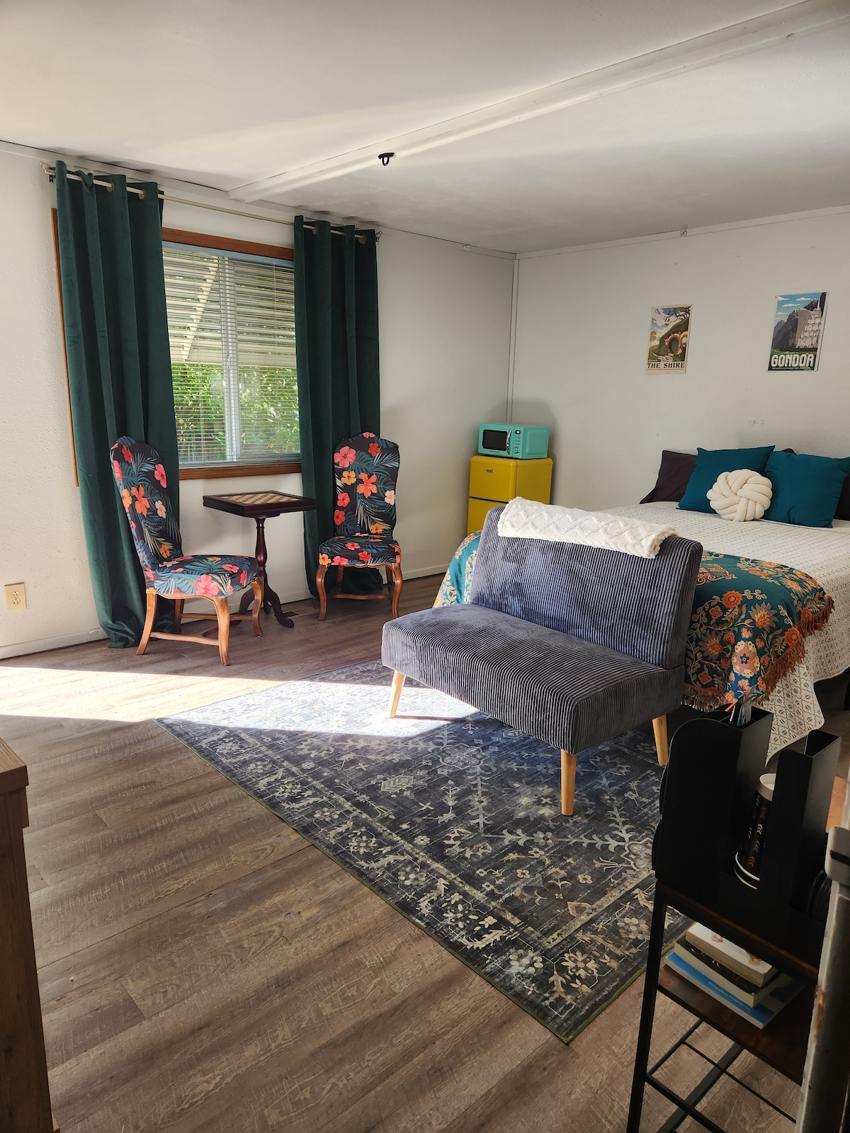 Explora los restaurantes, cafeterías y bares de clase mundial en los cercanos distritos de Williams y Mississippi. Da un paseo por el galardonado (y más antiguo) jardín de rosas de la Ciudad de las Rosas, al otro lado de la calle, en Peninsula Park. En casa, este estudio de segundo piso tiene espacio adicional en el loft de meditación, una cocina completa, internet rápido y un proyector para transmitir. Disfruta de tu terraza privada sobre el jardín compartido con hamaca y ducha exterior fría/caliente. Autobús y tren cerca con amplio estacionamiento en la calle.