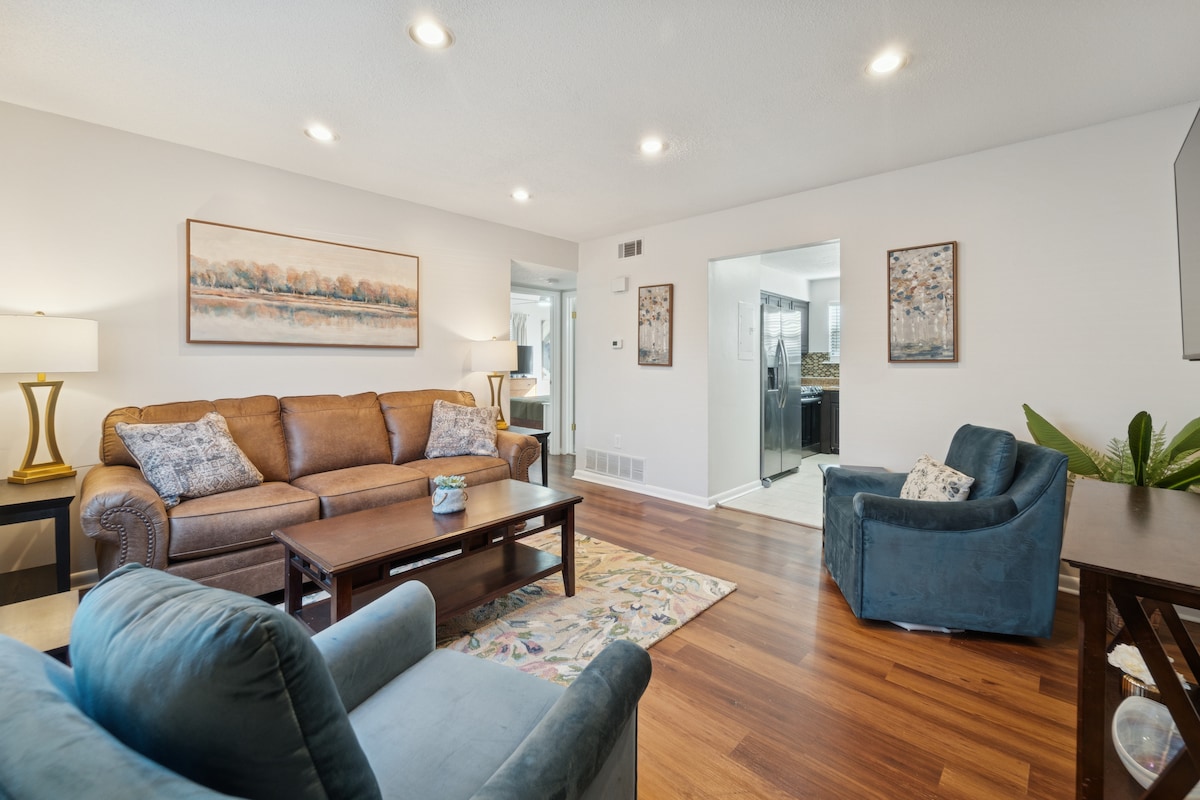 ¡EXCELENTE UBICACIÓN! Comienza el día con un paseo de 2 minutos por la mañana hasta Three Tree Coffee en el porche y disfruta de refrescos y ambiente locales. Electrodomésticos, muebles y decoración moderna a✔ ESTRENAR ✔ SE ADMITEN MASCOTAS, ✔ SE LIMPIAN y DESINFECTAN después de cada salida ✔ PROHIBIDO FUMAR/VAPEAR Un alquiler adicional se encuentra cerca. Ponte en contacto con nosotros si deseas alquilar ambos para grupos con más de 6 personas. ¡El alquiler adicional tiene capacidad para 6 personas y se encuentra justo al lado!