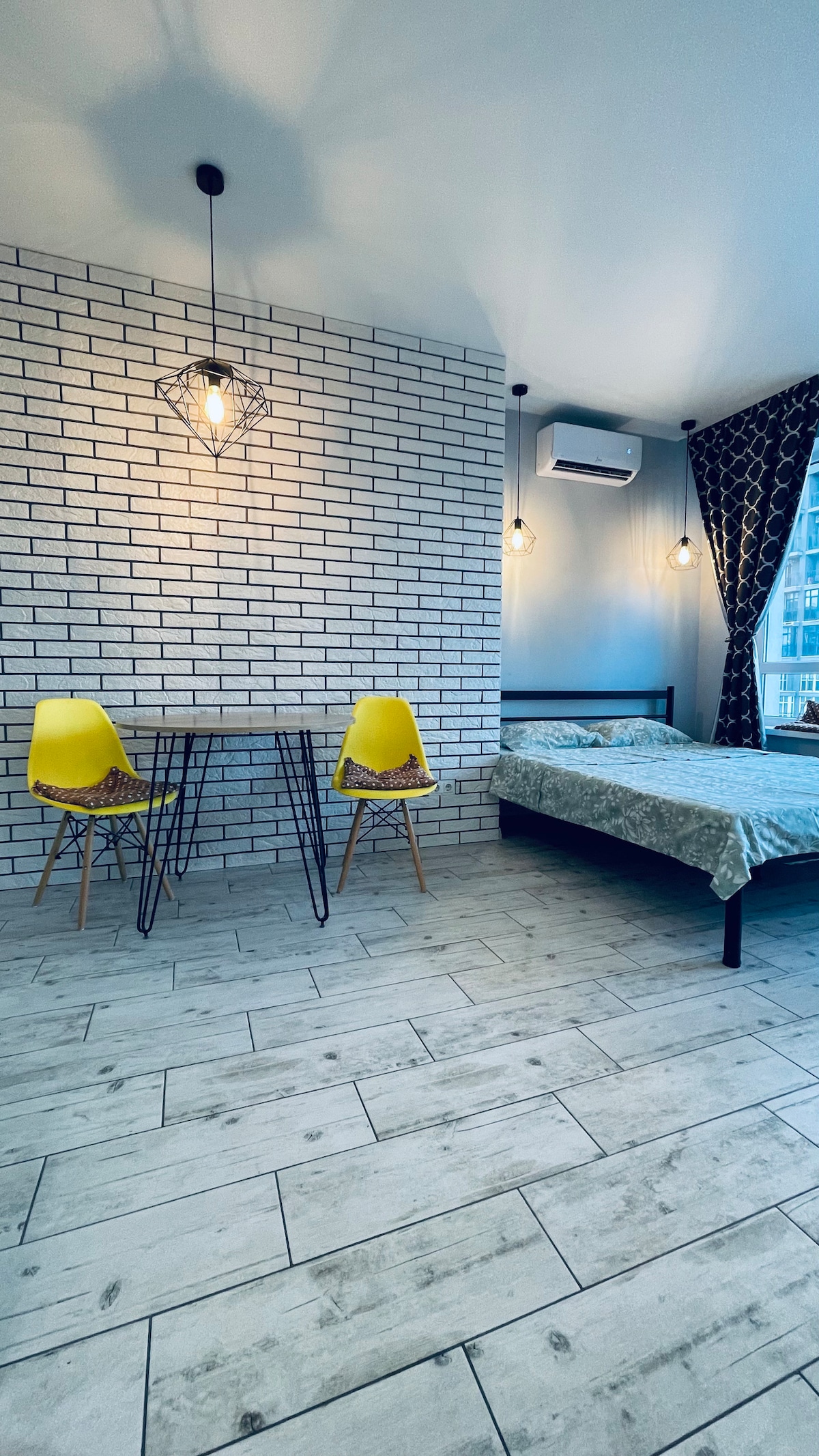 El interior del apartamento está hecho en un estilo escandinavo ligero con elementos de la Provenza. Las ventanas del área de la cocina tienen una decoración mínima en forma de rodillos cómodos, en el dormitorio hay cortinas hechas de luz, material fluido que se desplaza hacia el lateral de la propia ventana para permitir la mayor cantidad de luz solar posible. Hay un gran supermercado Novus y McDonald 's justo enfrente de la casa. El primer megamall ucraniano está a 10 minutos — LavinaMall