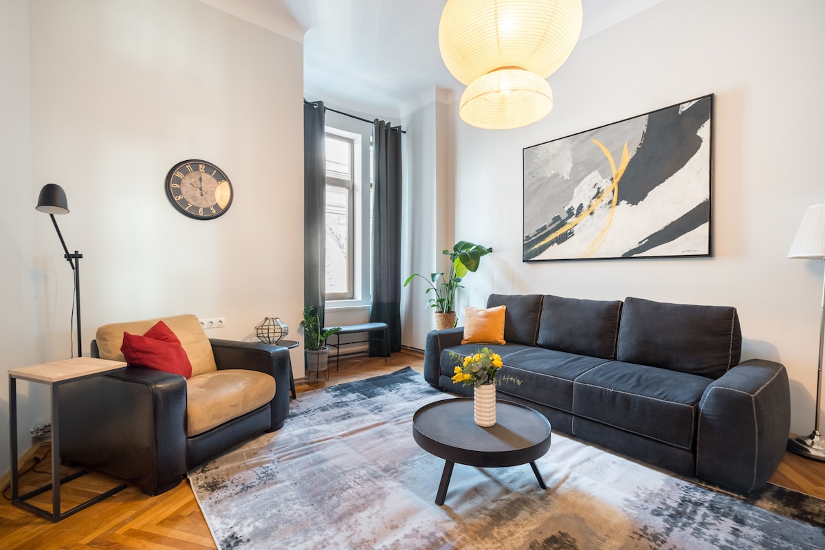 This newly renovated spacious over 80SQM flat is centrally located in a quiet dead end street, few steps away from Cismgiu Park. It is surrounded by cafes, restaurants, cool bars and night out places within walking distance. Also Old Town is in walking distance. The perfect match between a great location, well designed space and a fully equipped kitchen, will make from this flat a good choice for shorter or longer stay, for guest that are traveling for business, couples or families with kids.