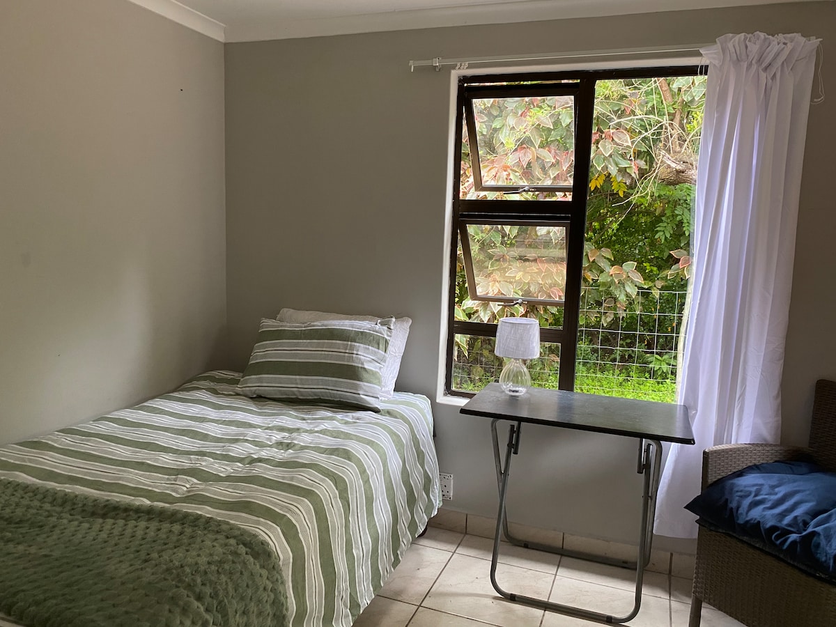 Enjoy a quiet, comfortable stay on our homestead in a well equipped fully furnished cottage that sleeps two. Spacious sunny kitchen with a private courtyard. Weber braai and an outside eating area. Perfect for digital nomads or travelers heading in/out of the Transkei or locals wanting a quiet retreat. Enjoy plant therapy in our beautiful tunnel, feeding our chickens and collecting your own eggs, walks to the river and animal sightings.