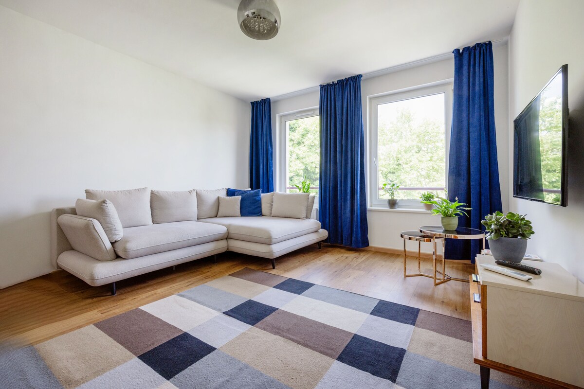 Beautiful, modern, bright and newly furnished apartment with balcony in the 13rd district close to the Danube! FREE PARKING in the garage. Lovely and peaceful location, however it has quick access to the city center (Deák square 12 min by metro/no transfer). The metro station is 150 m from the apartment! Free gifts for our guests! It can accommodate 4 people. The air-conditioned apartment has a bedroom for two (king bed - 180x200), a spacious living room with a sofa-bed for two (150x200).