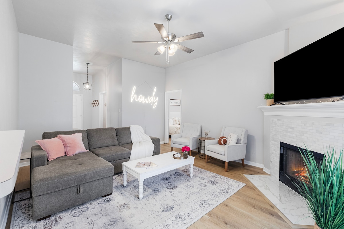 Howdy! Welcome to the Howdy Home in Bryan’s charming historic district—just a 10-min stroll to downtown Bryan. Perfect for Texas A&M visits (only 6 miles away) or Legends Event Center (7 minutes away). Enjoy effortless self check-in/out, a fully stocked kitchen, and private backyard with firepit + cornhole. Unwind with 65” TV & Sonos sound. Sleeps 6: 1 king, 1 queen, 2 twins. Book your relaxing Bryan getaway!