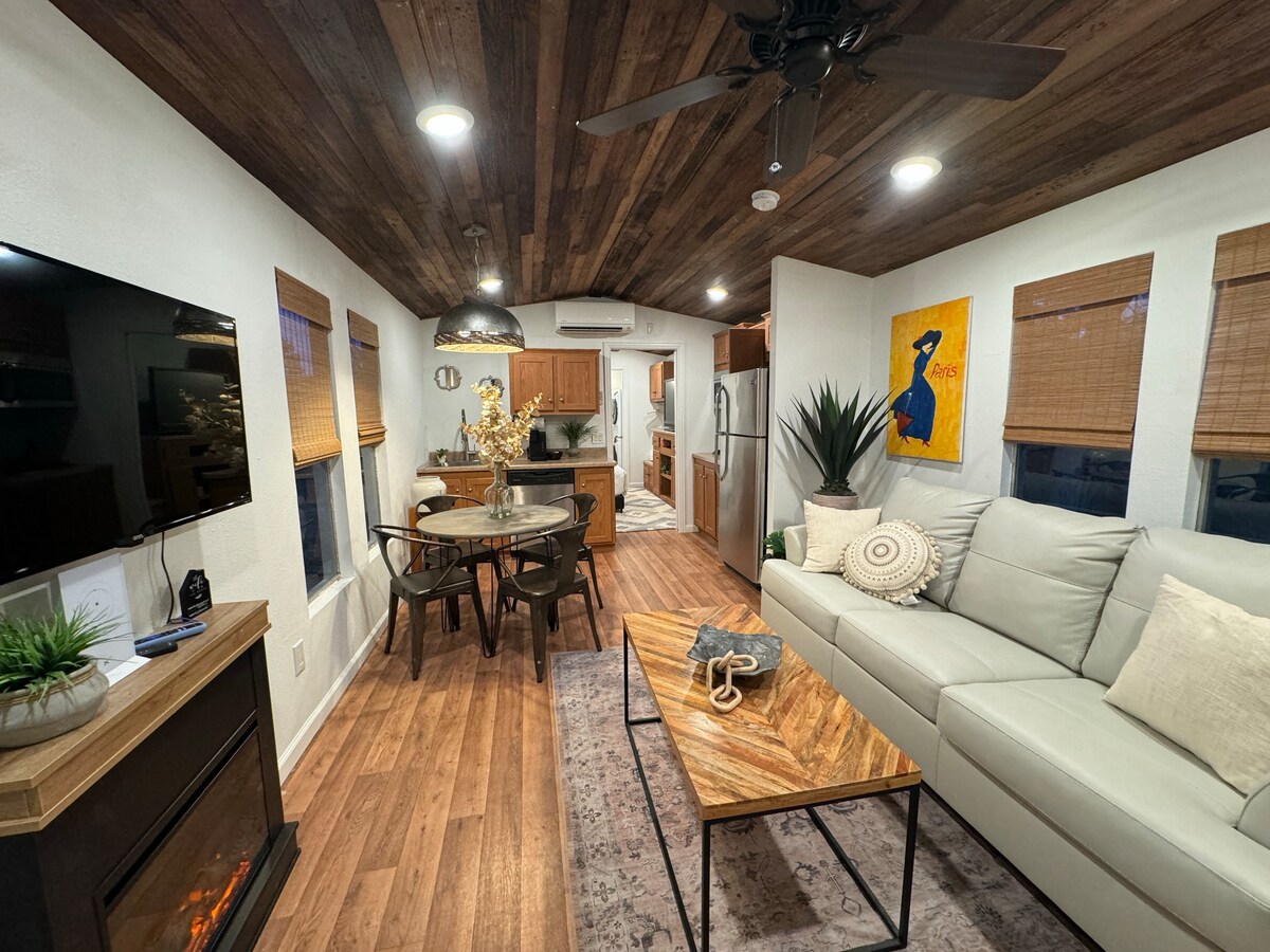 Bienvenido a nuestra encantadora cabaña negra ubicada junto al lago Somerville en el centro de Texas. Un acogedor refugio rodeado de robles. Entra en un ambiente cálido, con un techo de madera reciclada y una chimenea, perfecta para esas noches acogedoras. Disfruta del aire libre con una chimenea, un porche delantero cubierto y la serena belleza de la zona. Esta cabaña, que admite mascotas, ofrece una lujosa cama tamaño queen y todos los servicios para una estancia acogedora. Relájate, desconecta y aprovecha al máximo esta serena escapada.