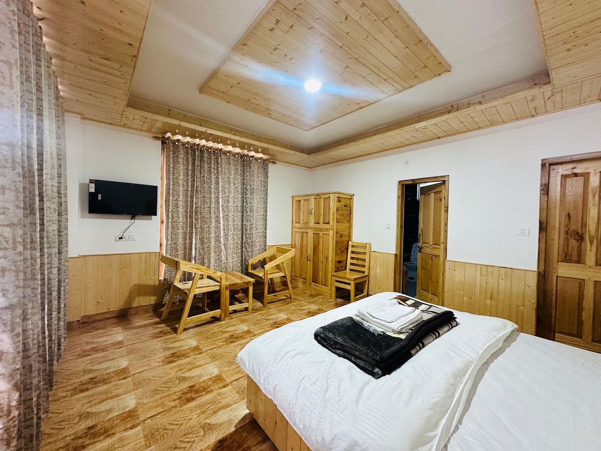 Relax with the whole family at this peaceful place. Tucked away in a lush apple orchard at Rangri Homestead, this peaceful 2-bedroom home offers a serene escape from the Manali crowds. Breathe in fresh mountain air from your private balcony or relax in our tranquil garden. It’s a safe, cozy Home away from home where your family can reconnect with nature. Perfect for a restful, authentic Himalayan getaway. Away from the city Crowd. Heaters are chargable basis