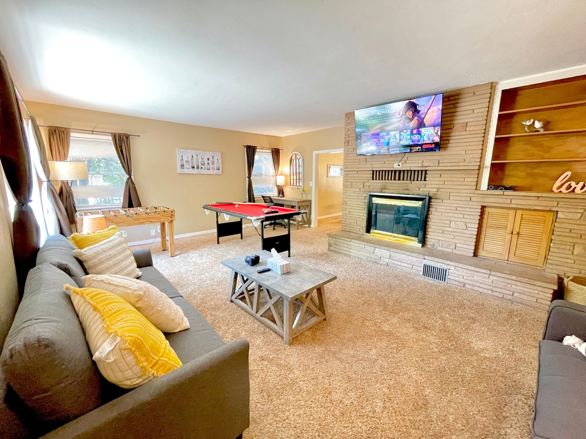 Casa de retiro urbano de estilo exquisito con rincón para trabajar desde casa. Encantadora casa familiar con un espacioso y práctico plano. Ideal para familias o grupos. Situado en el centro entre el centro médico Enloe, CSU Chico y Bidwell Park. Totalmente equipado con entretenimiento como mesa de billar de 6 pies, futbolín, TV inteligente y un enorme patio trasero privado a la sombra. Este alojamiento ofrece la mejor experiencia de Chico.