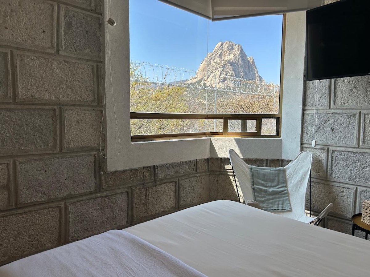 Relájate con toda la familia y amigos en este alojamiento donde la tranquilidad, el confort y la privacidad se respira. A sólo 7 minutos caminando del centro de Bernal, sin el bullicio y con una hermosa vista hacia la Peña, tienes este sencillo espacio que fue creado y diseñado para tu comodidad y la de tus invitados.