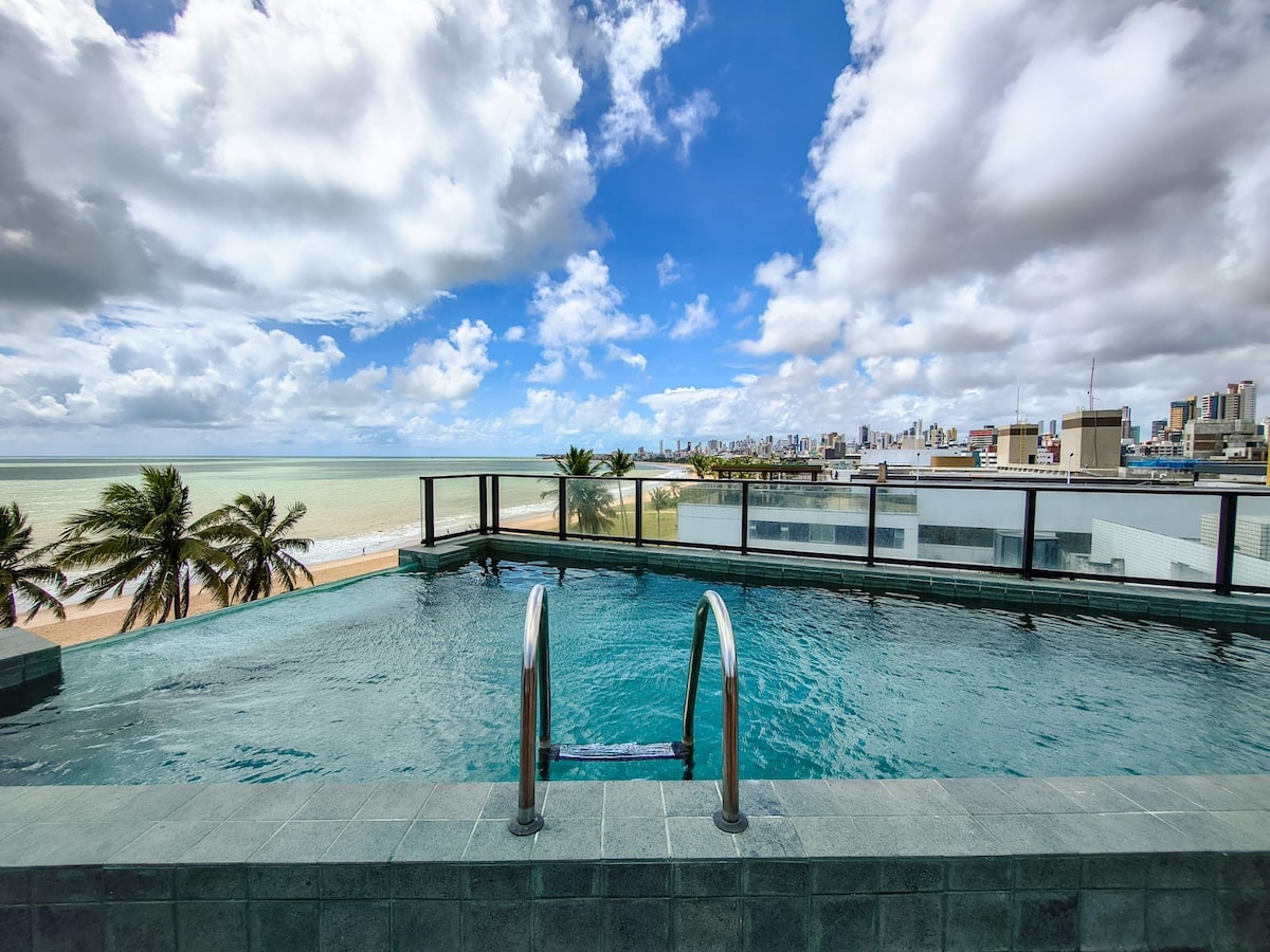 Apto beira-mar com piscina e vista paradisíaca