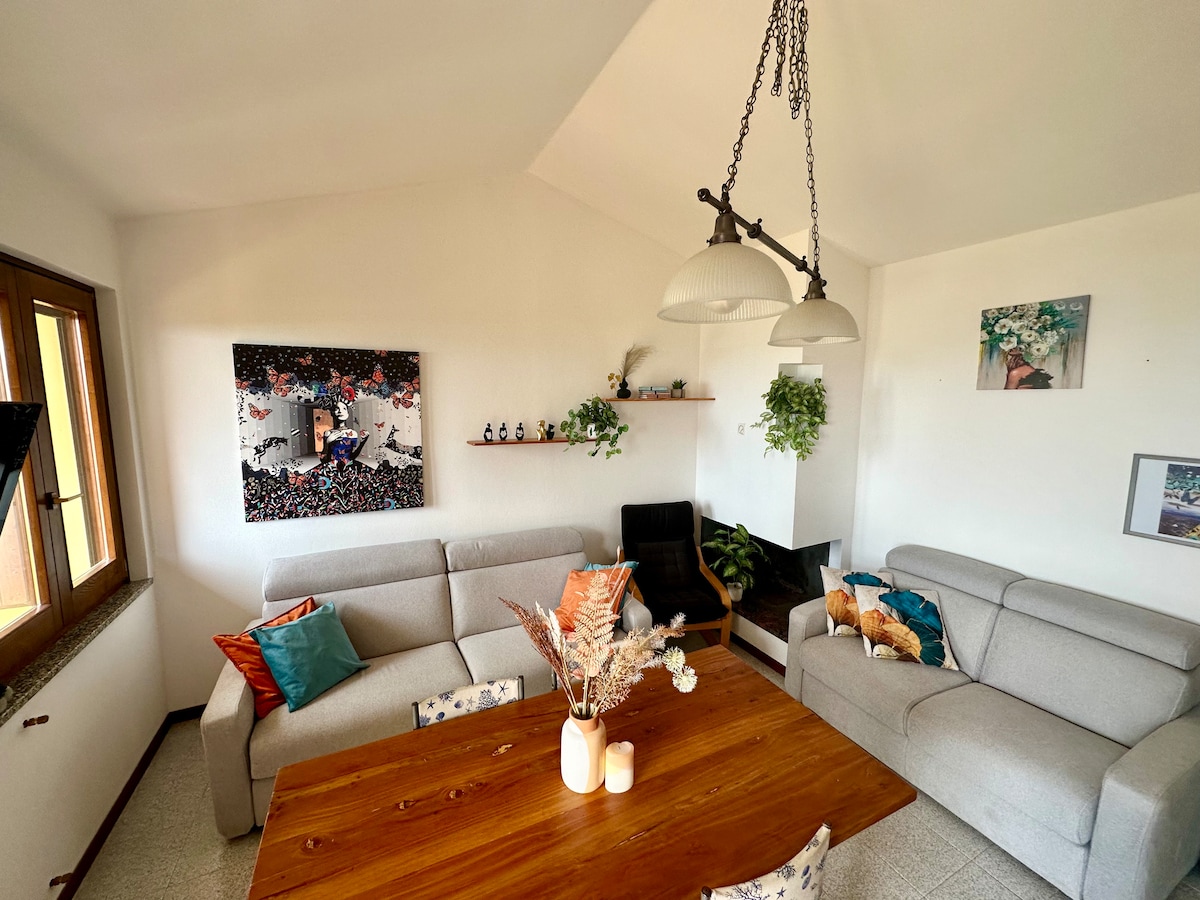 Bilocale composto da : Ingresso soggiorno con un divano letto matrimoniale , un comodo tavolo con 4 sedie , una cucina moderna con piano induzione ,Bollitore ,Macchinetta del caffè , Microonde,Toastapane,Frigorifero e un Freezer. Camera da letto con un letto Matrimoniale alla francese e armadio con ante scorrevoli. Nel bagno è presente una doccia , sanitari sospesi, un Phon e una Lavasciuga. Un patio con giardino dove poter mangiare. In tutta la casa sono presenti le Zanzariere