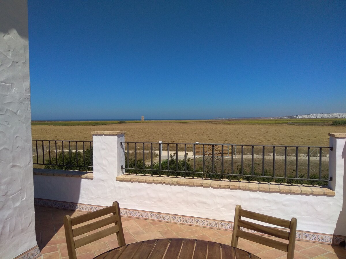 Se encuentra en la Comarca de la Janda, en una finca dedicada a la agricultura y ganadería, ideal para personas que buscan algo diferente, respirar aire puro, escuchar a los pájaros y disfrutar de la tranquilidad. Dispone de una gran piscina vallada, compartida con otros huéspedes y rodeada de césped, perfecta para relajarse observando la naturaleza y el ganado pastando. Casa privada con patio y jardín vallado. También consta de chimenea con leña gratis durante la estancia.