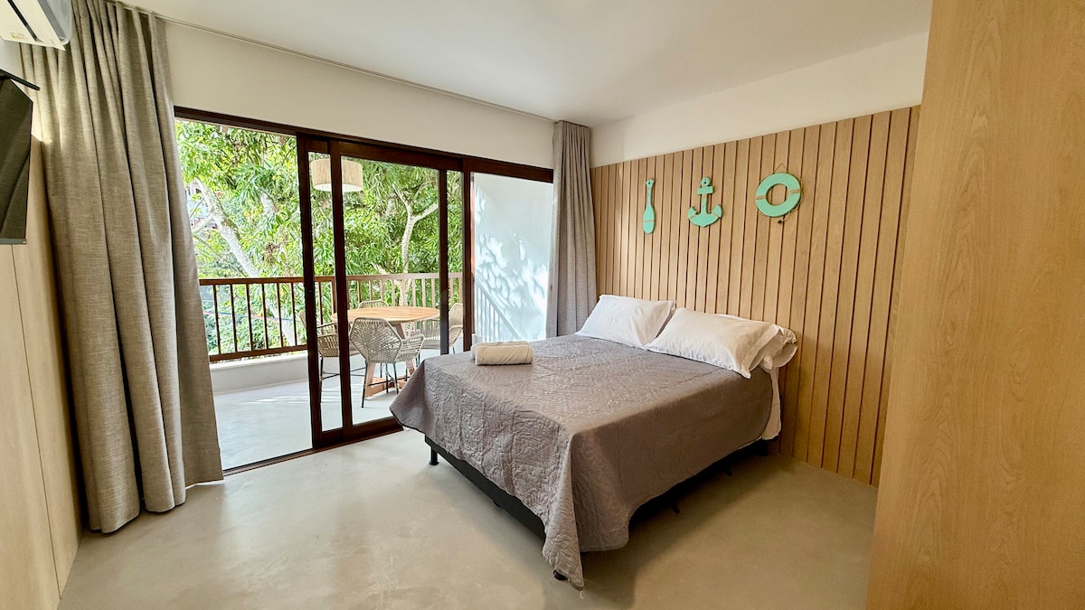 Cerca del pueblo y a 200 metros de las paradisíacas playas de Porto de Cima, es el lugar ideal para quienes buscan tranquilidad, comodidad y calidad en su estancia. Está situado en la cima de la colina con vistas al bosque, por lo que si tiene alguna dificultad para subir escaleras, no recomendamos alojarse con nosotros, porque hasta el loft son 90 escalones. Totalmente equipado, balcón con hamaca, cocina completa, baño con ducha eléctrica, aire acondicionado, sofá cama, cama queen size, TV por cable y caja fuerte.