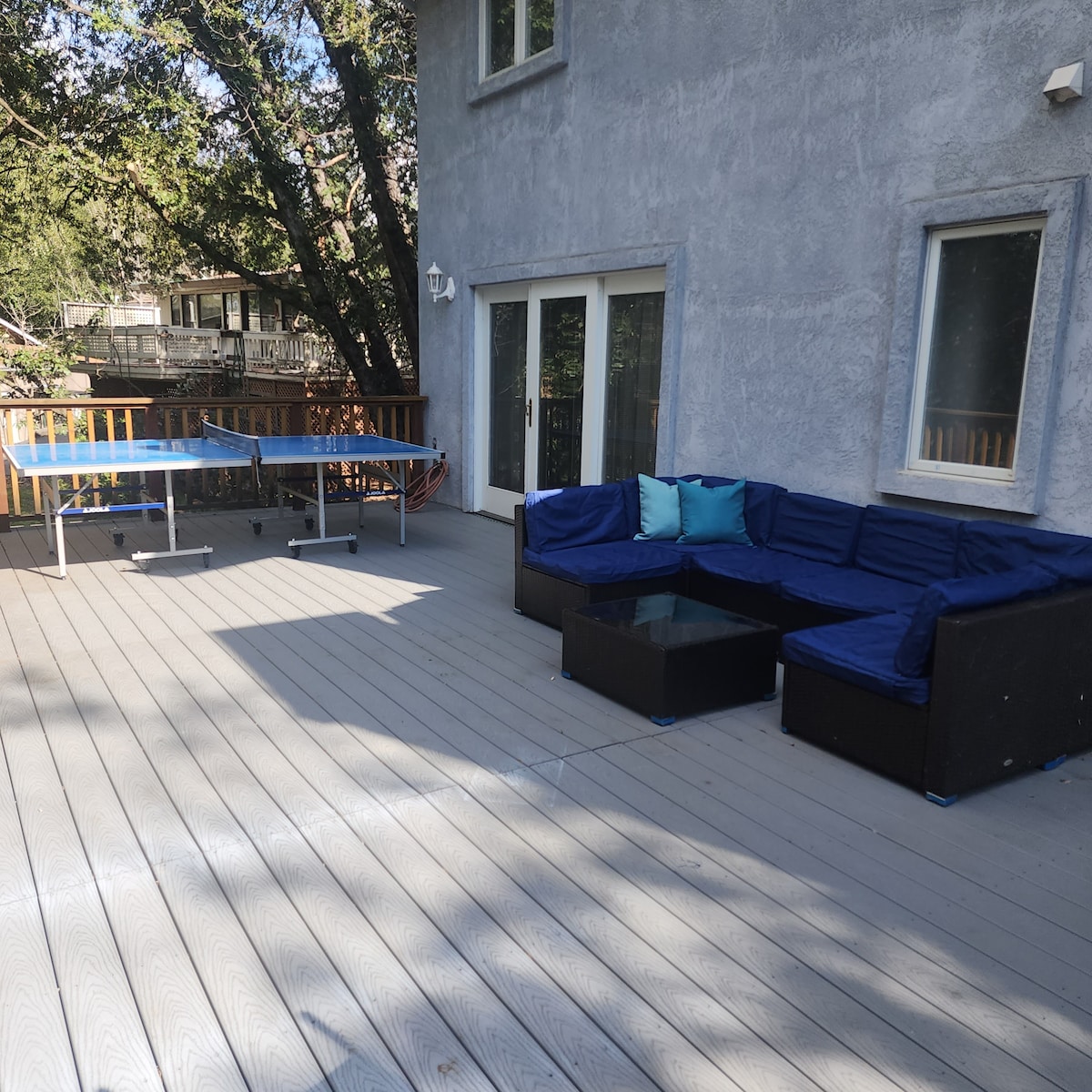 Espacioso 2400 pies cuadrados en Blue Lake Springs con áreas de 2 litros de espacio habitable perfecto para 2-3 familias con 3 dormitorios + loft, 3 baños completos. ¡Increíble espacio al aire libre con terraza delantera con jacuzzi para observar las estrellas, patio trasero con fogata y horno de pizza! Ubicación Gr8: 2 comestibles en auto a poca distancia, restaurantes. Área de escritorio y wifi Xfinity para trabajar desde casa. Lagos privados, centro recreativo y acceso a la piscina en verano (se aplica una tarifa para huéspedes). 2 kayaks para niños y SUP para uso de los huéspedes. ¡Pase del parque Big Trees y 1 pase de parque sno incluido! Se admiten mascotas.